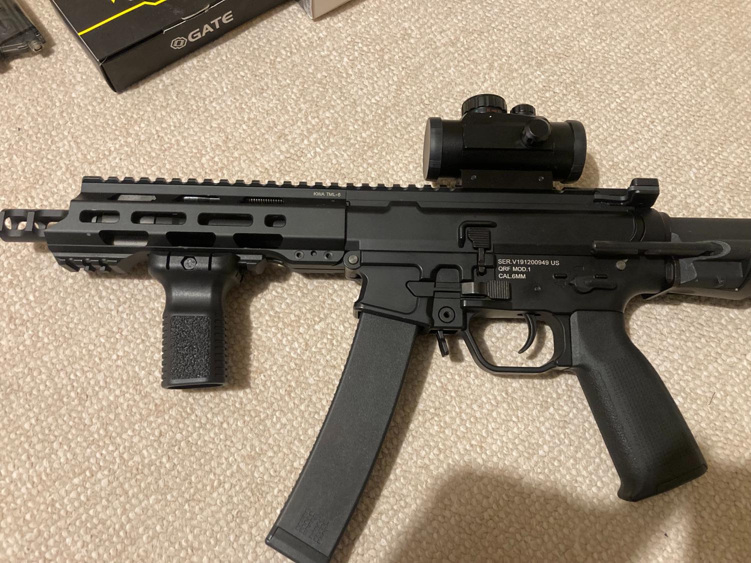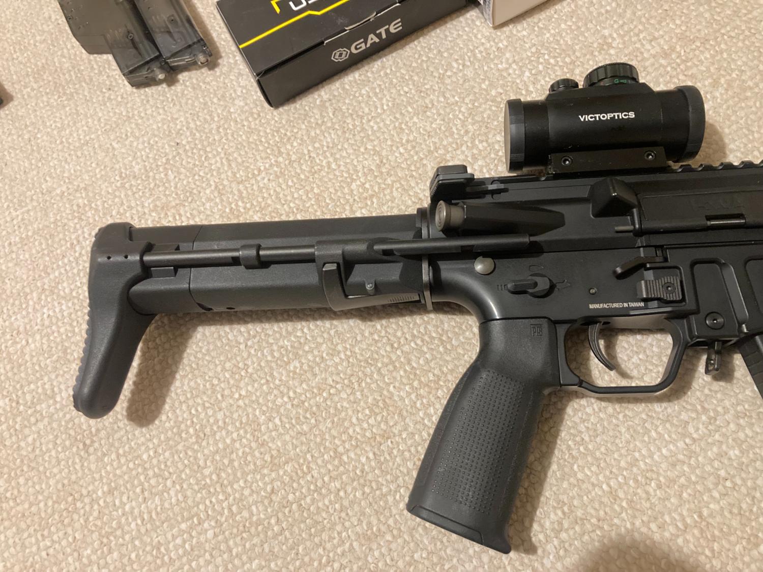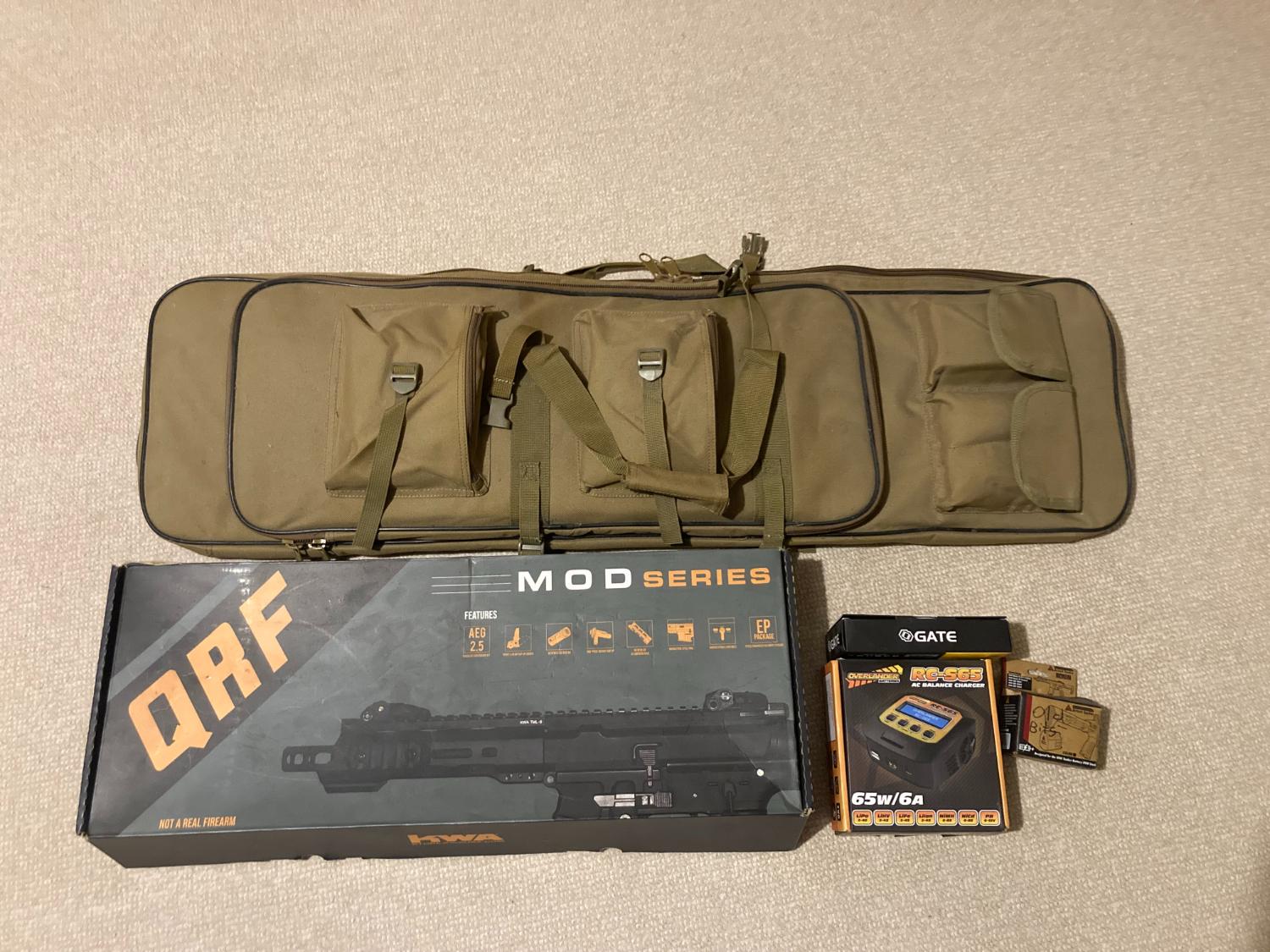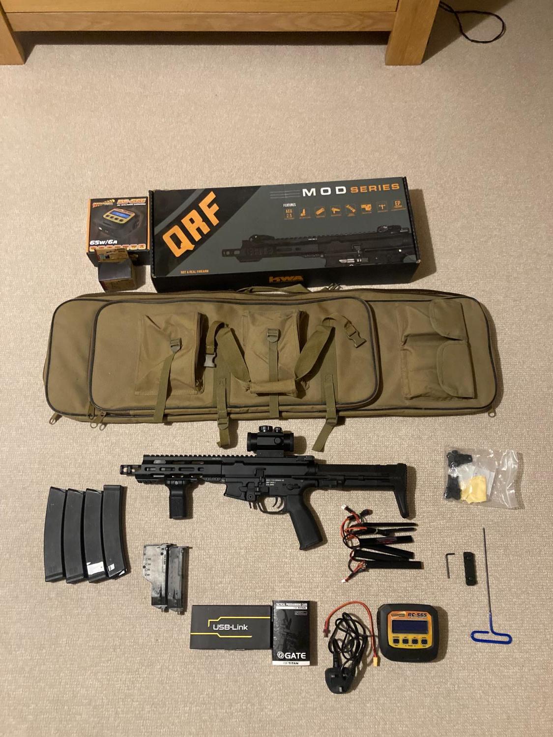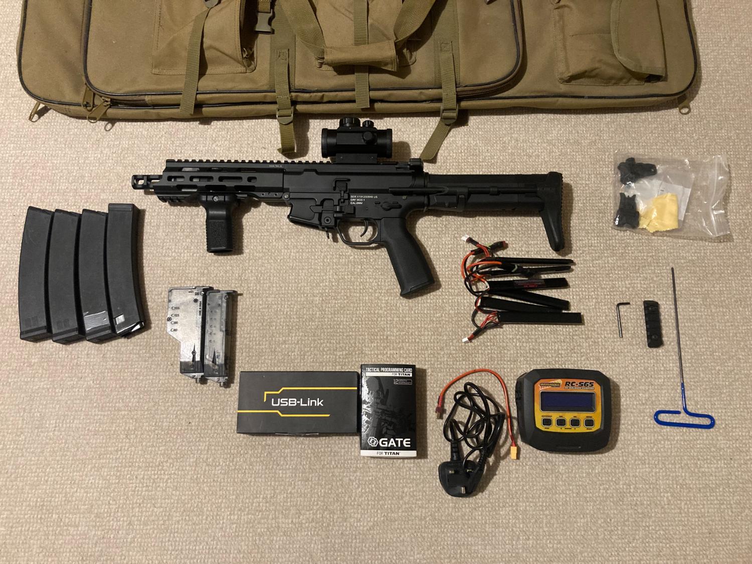 Gate Titan fitted, Overlander RC-S65 charger, x2 1450mAh 11.1v batteries, x4 mags, victor optics sight, gunbag, x2 mag loaders, fore grip and original iron sight.