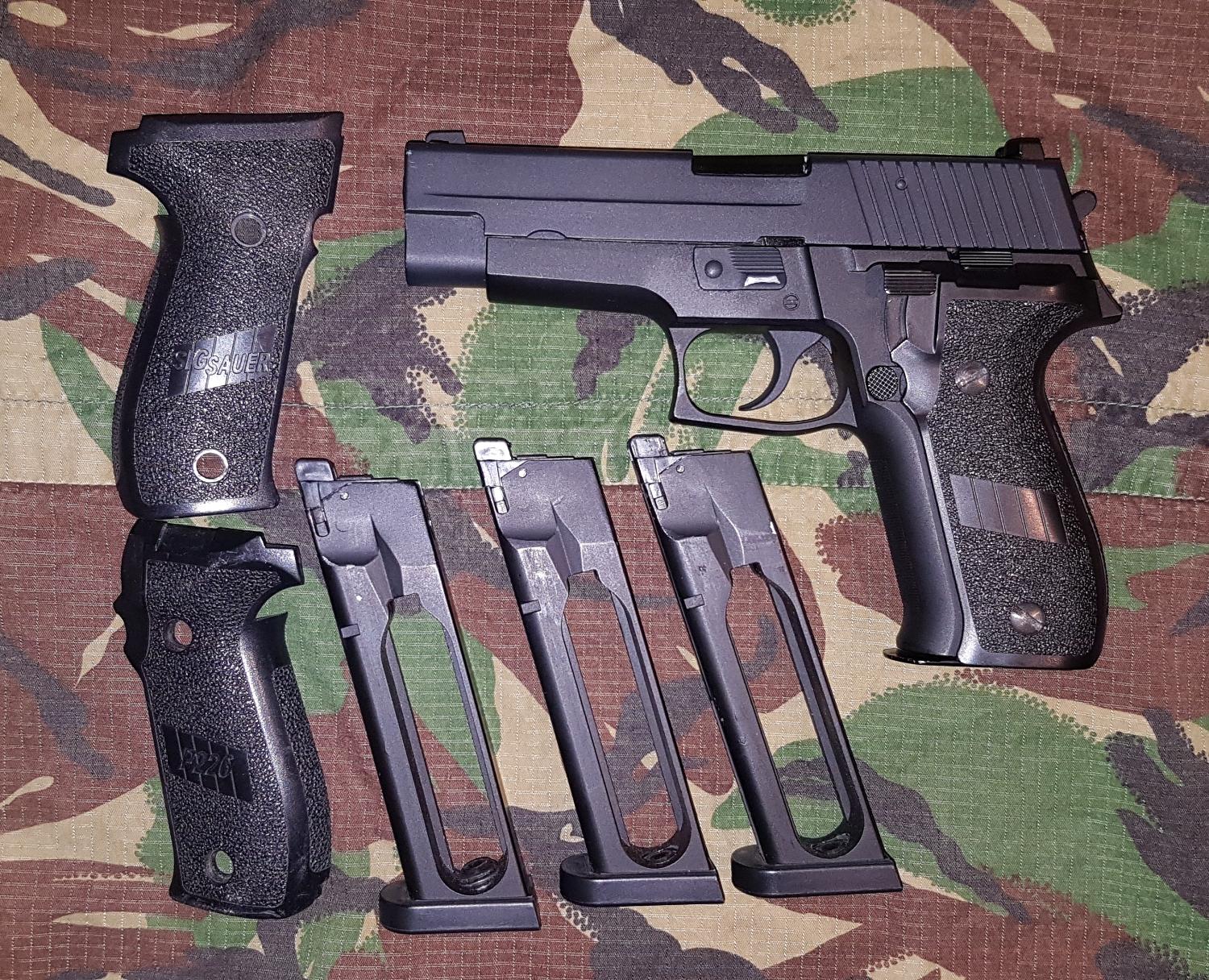 WE P226 non railed version for sale. Comes with original magazine (with a very slow leak), three Vorsk Co2 magazines, Tokyo Marui trade marked grip panels and all of the spare co2 carts that I own. Also comes with a G-Code style kydex holster which it fits perfectly.