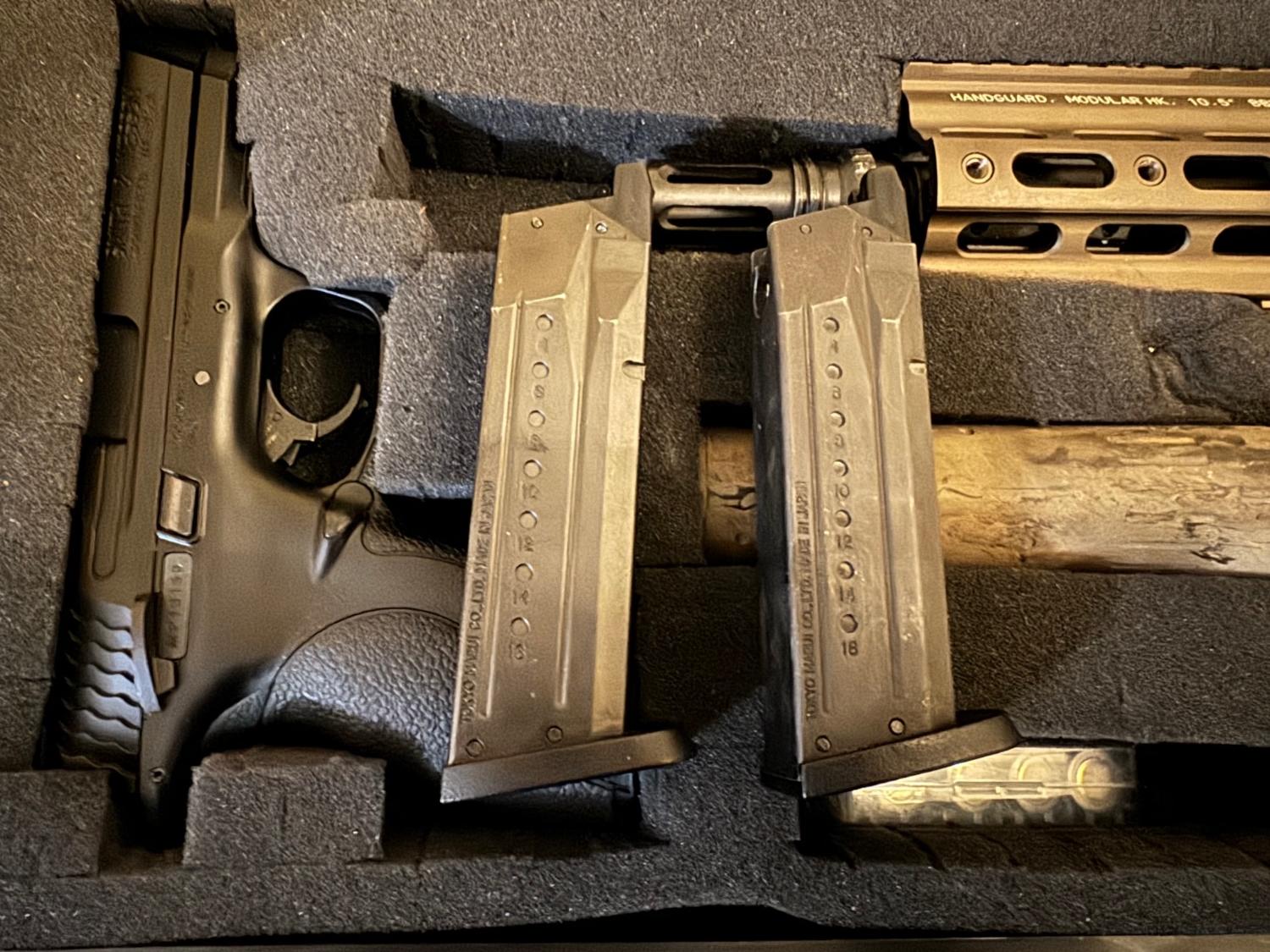 TM M&P9 gas pistol with 2 mags and a can of green gas.