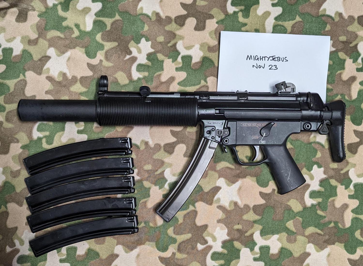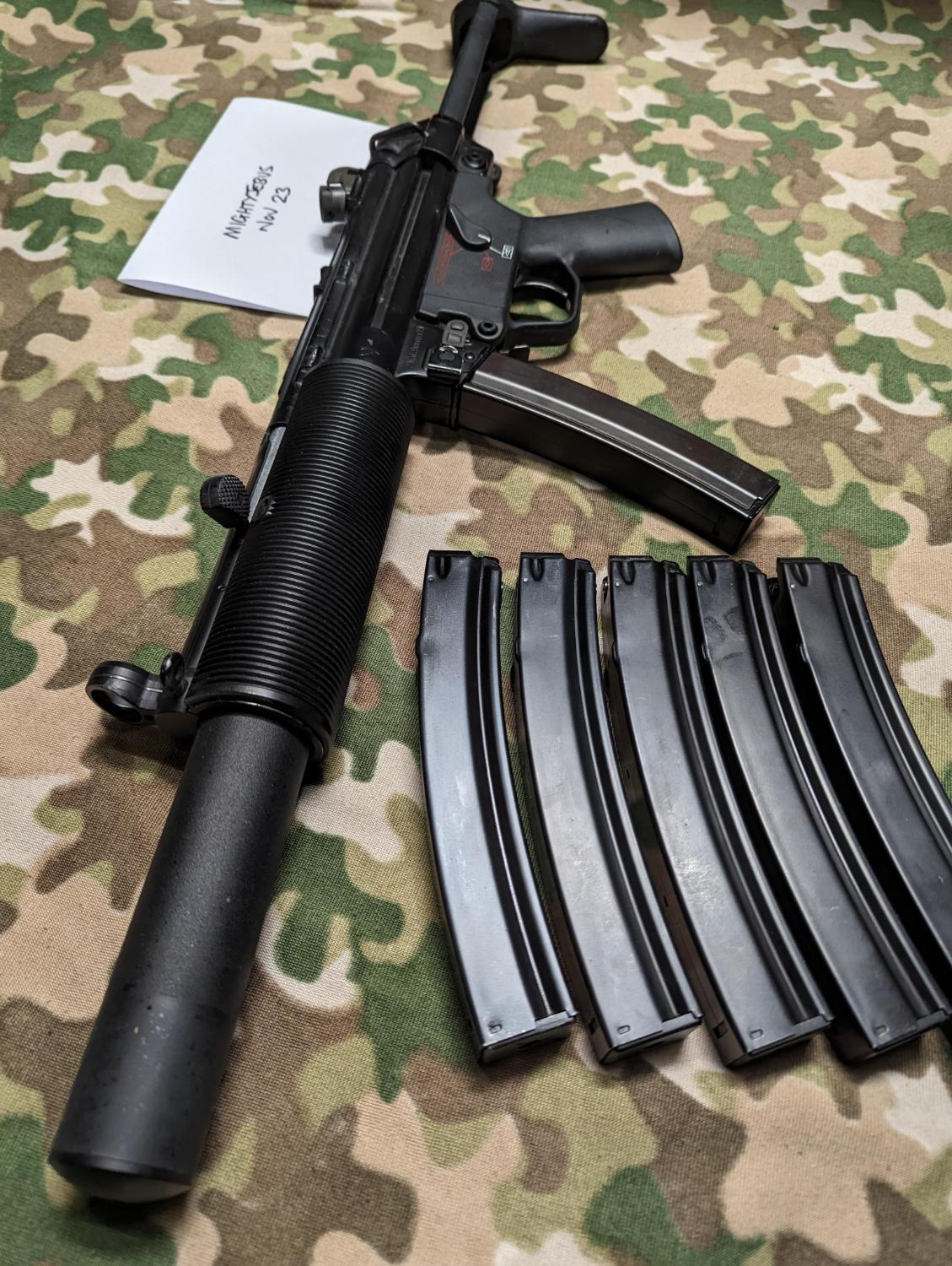VFC MP5SD6 V1 GBB SMG with 6 leak free magazines. When I got this it suffered from the normal VFC issues but I fitted a crusader feeding ramp and a couple of other aftermarket parts and it runs really well now.
