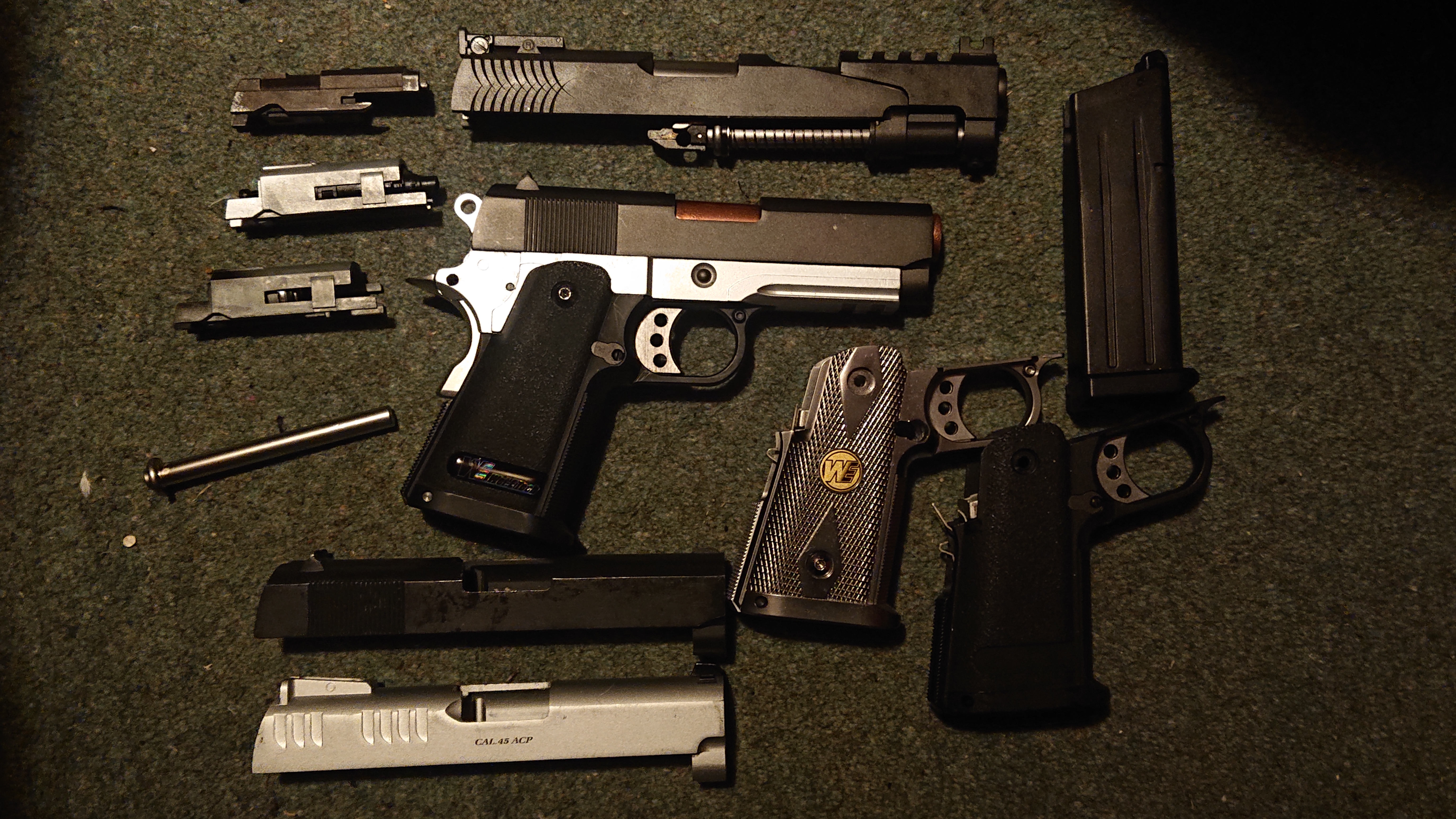 Price includes postage and fees. The baby hi capa is complete apart from safeties. The hammer dosent like to lock back. Also included are most of the parts of a we splitslide hi capa and a few other bits.