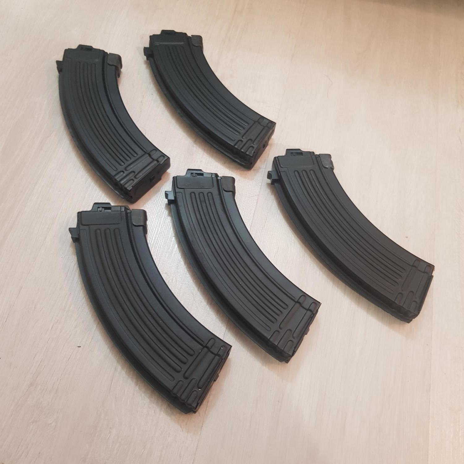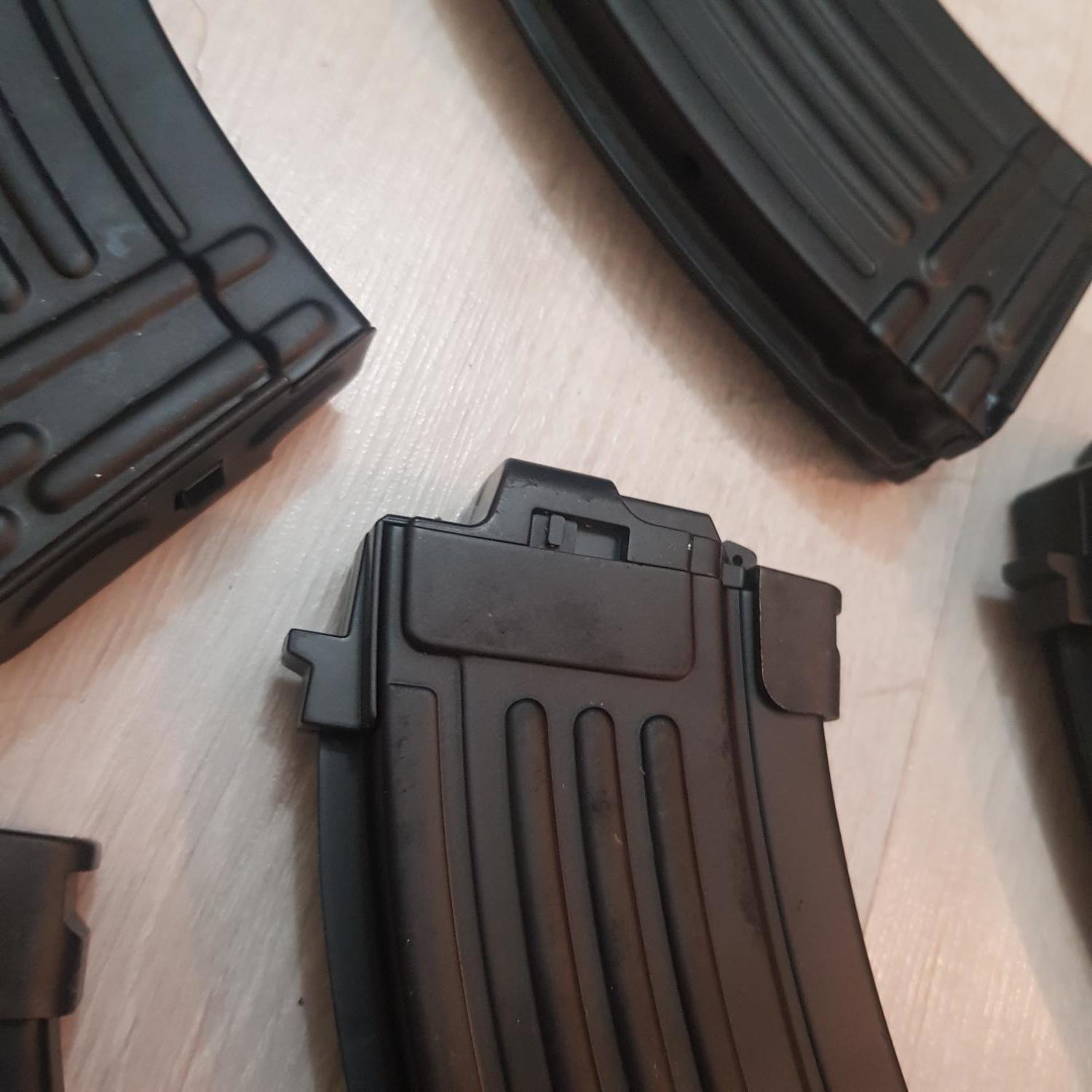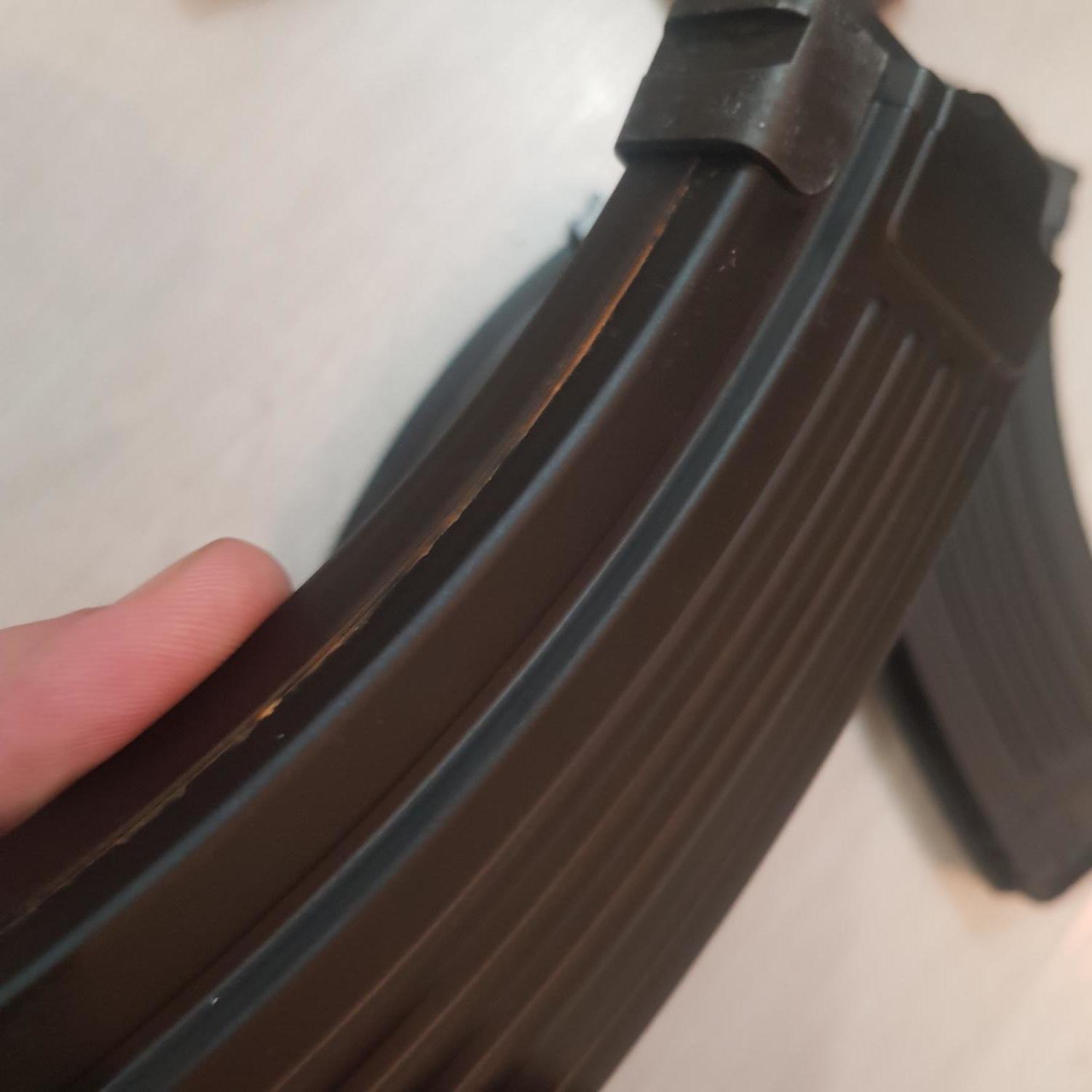 I've got 5 90rnd ngrs ak47 mags all are unused and unfielded have been sat in storage for a while, one mag has got a bit of surface rust on one of the folds as shown in the pictures from being left sat but it will most likely wipe off with a rag, I have no use for them as I no longer own a ngrs.