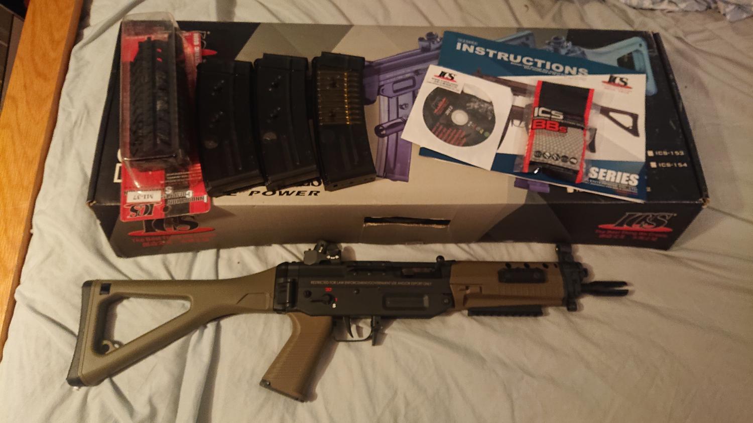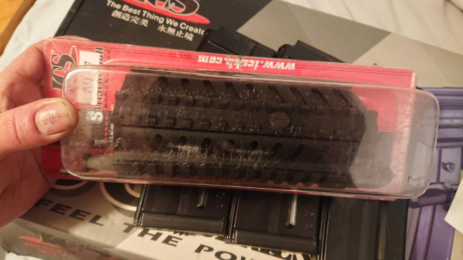 Item is as new old stock from a shop. May have some marks from being on display and handled but is otherwise new. Comes with 1 low cap and 2 hi cap mags as well as a full metal railed handguard. Price includes fees and postage.