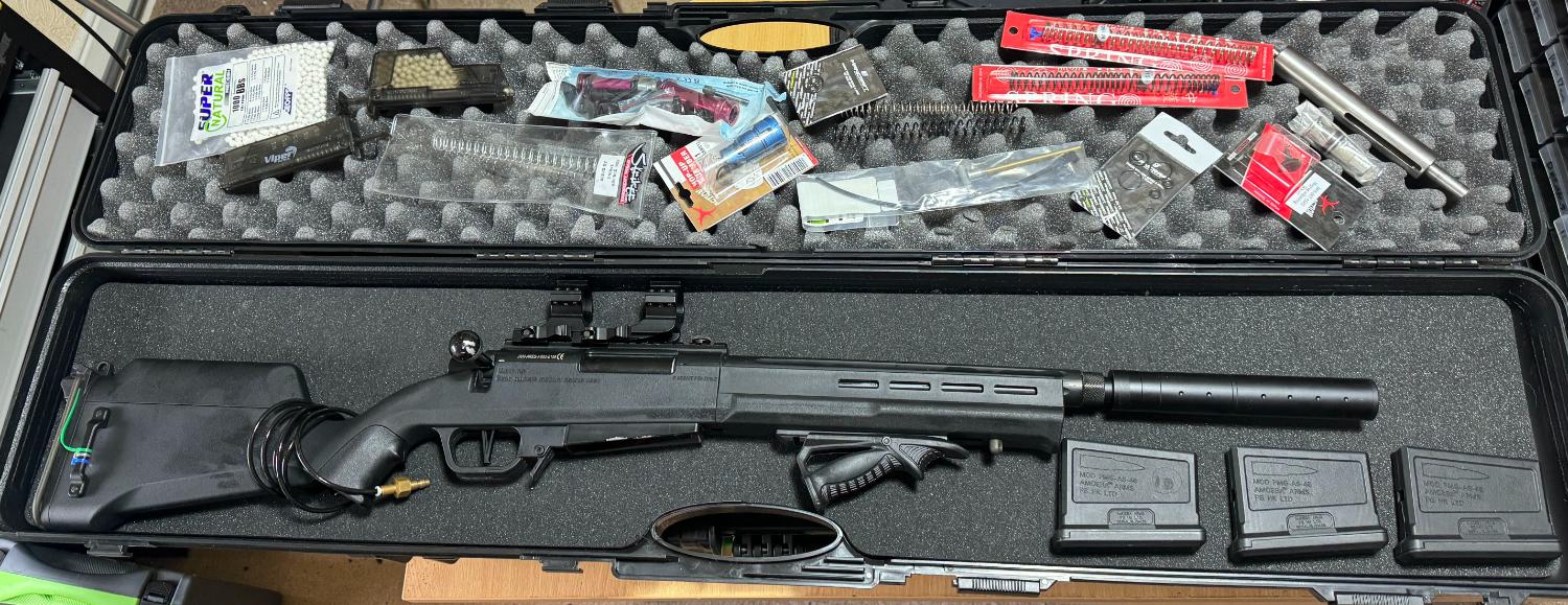 Running the mancraft SDIK engine, with the action army upgraded hop and rubber, with an upgraded inner barrel and flat trigger.