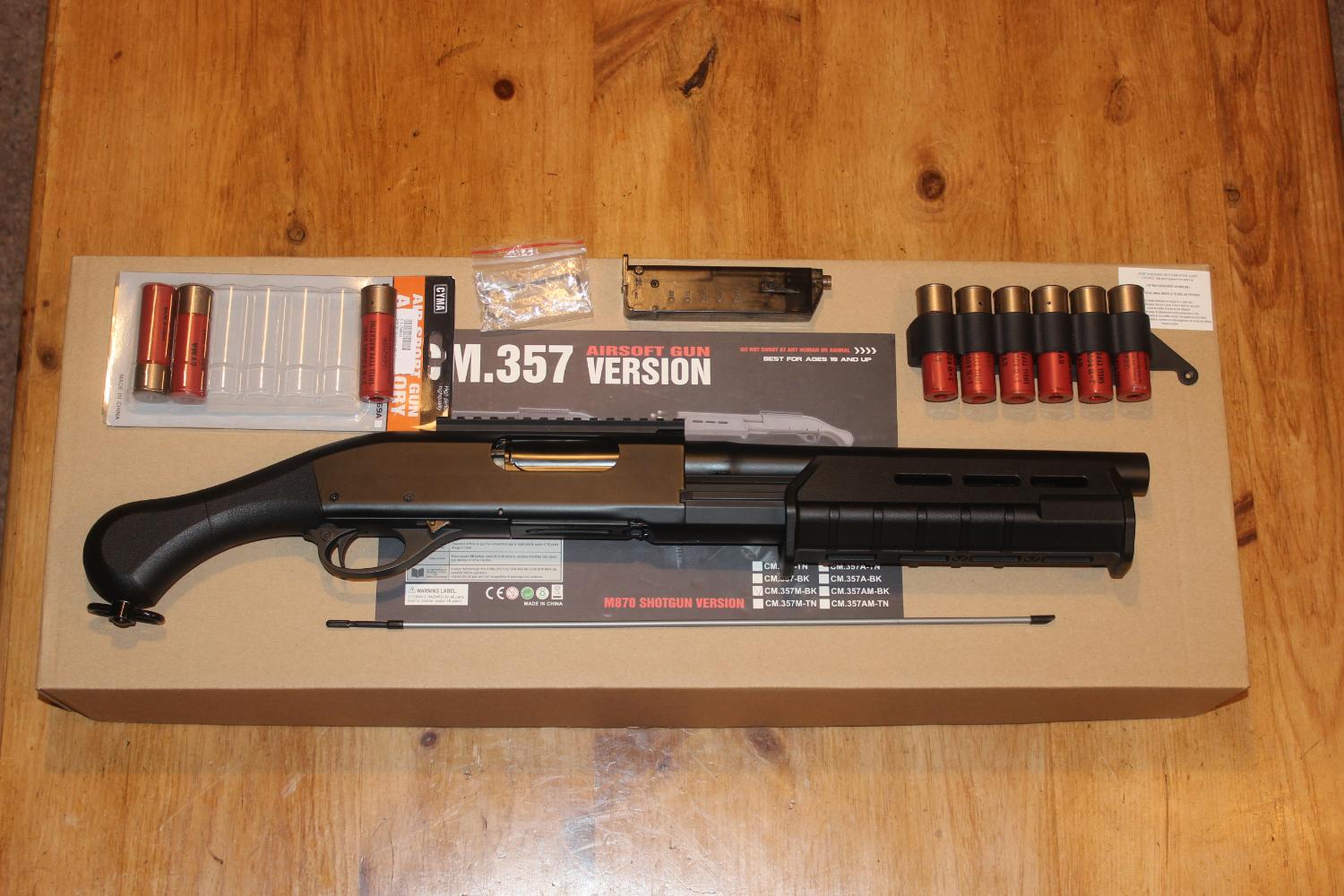 Cyma CM.357 metal tri-shot shotgun with extra shells