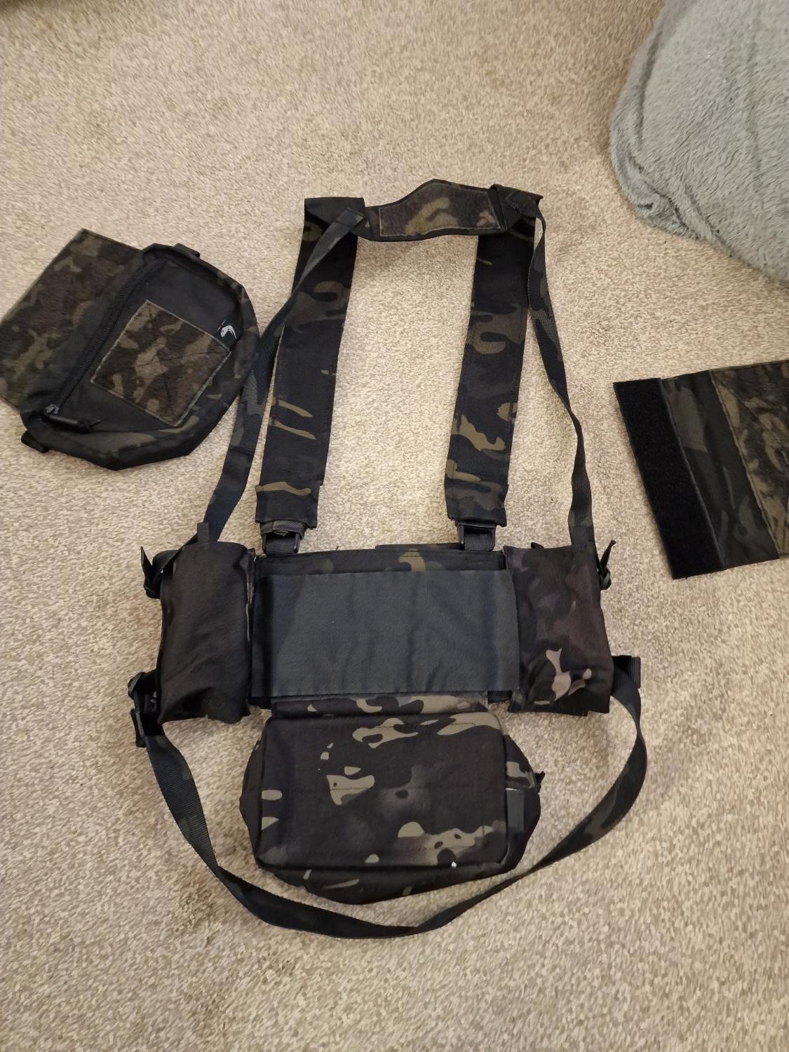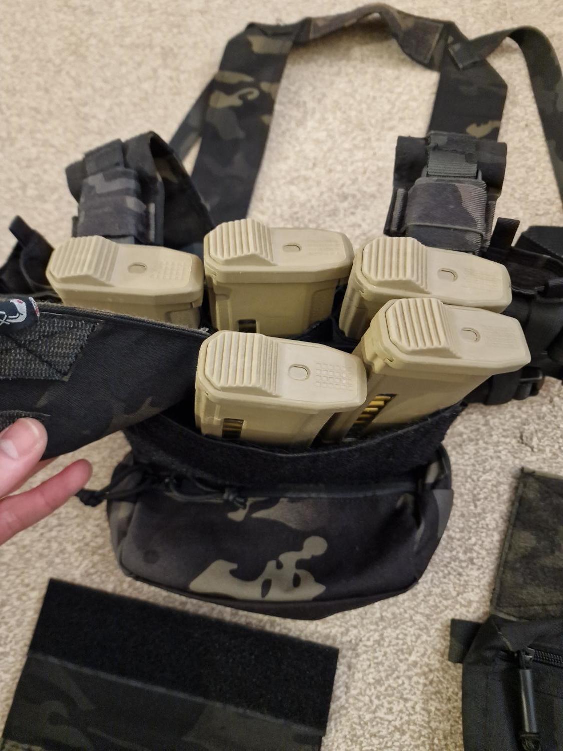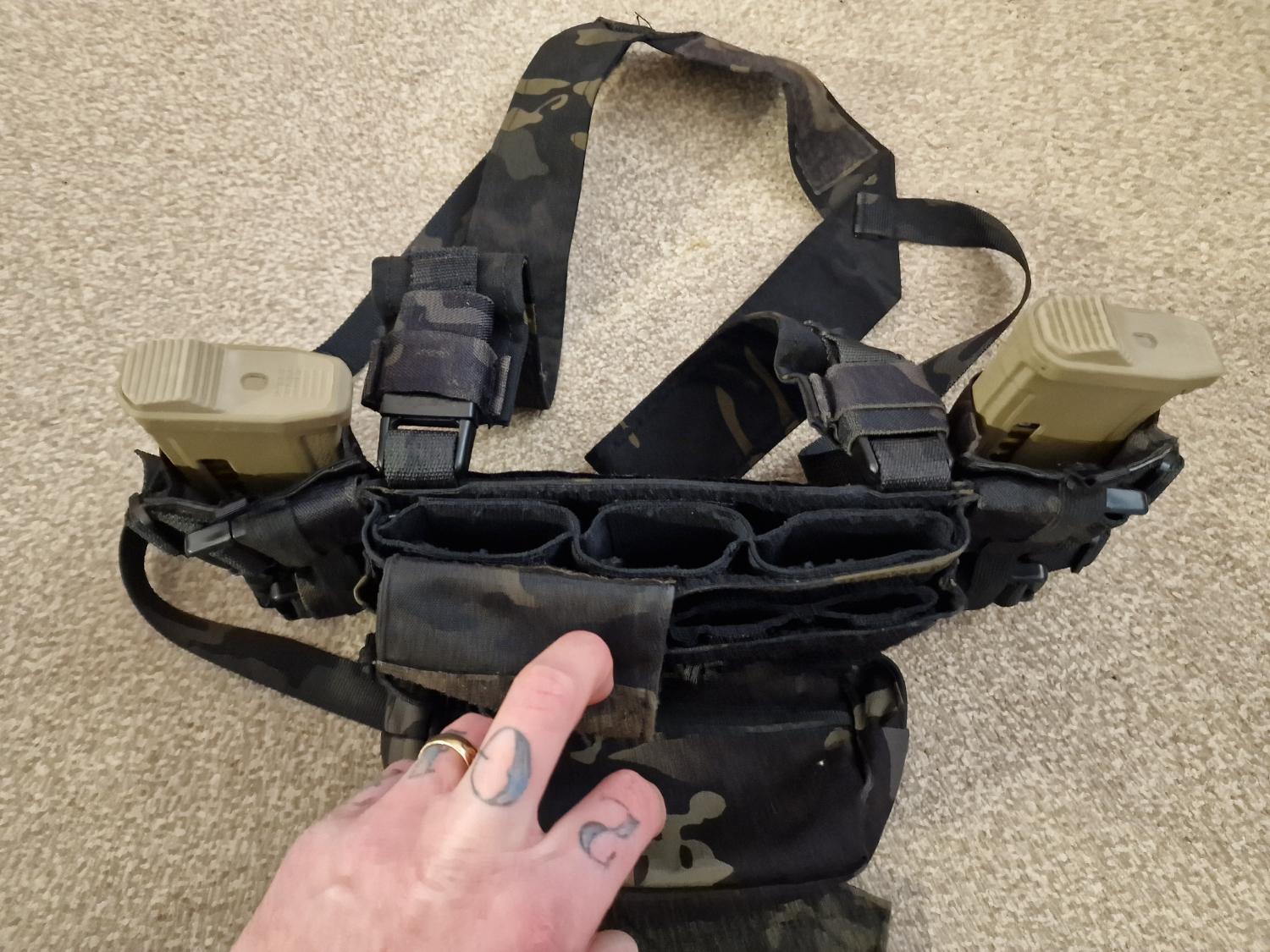 Very good condition, 2 scrote pouchs, 2 single mag pouches on side and the velcro inserts, small and large velcro lid.
