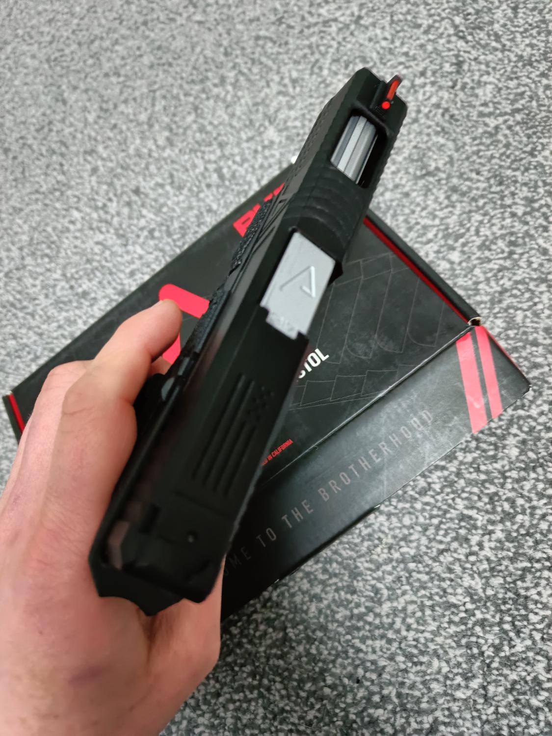 Modelled on an Agency Arms Glock 17, this comes with the kind of features usually found on far more expensive builds. These include slide cutout to lighten, aggressive front serrations, factory stipple-effect (Lone Wolf) frame, extended slide release, flared magwell and adjustable flat trigger.