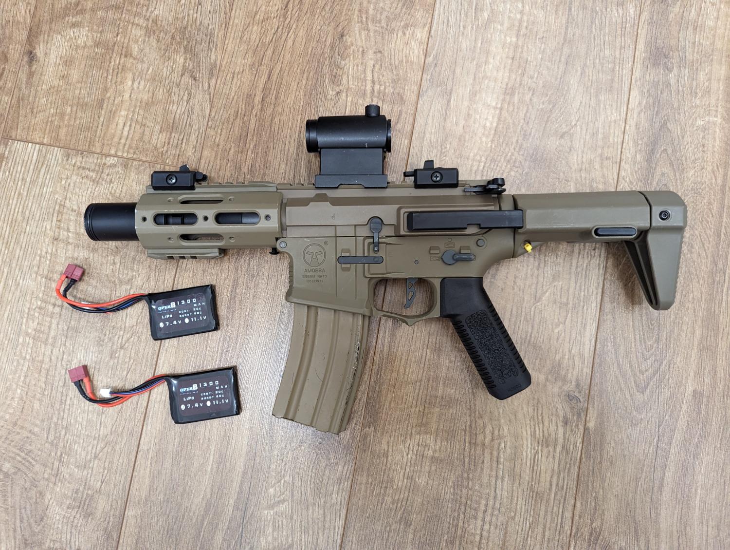 Good condition. This comes with 2x batteries and a high cap magazine.