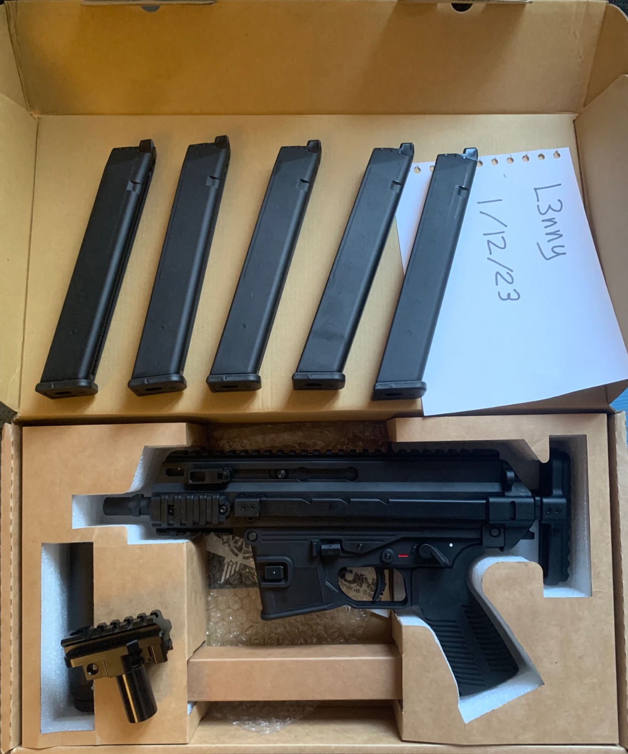 5 mags, suppressor, Stock adapter