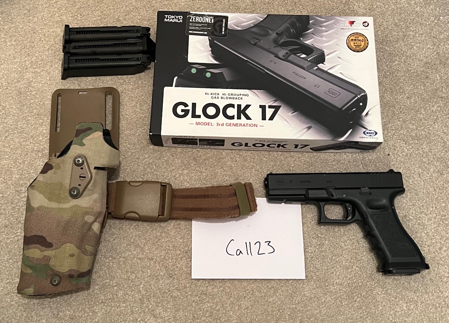 Selling Tokyo Marui G17 gen 3 with tmc 6354 replica holster and 4 magazines. Had this for a while now never had time to field it so has only been used for indoor larping. Magazines are possibly leaking, I don’t have gas to check this unfortunately. I don’t know the exact fps as I never took it to a site to chrono it, can’t imagine it being over 350 though. The pistol will move less in the holster with a surefire style x300 torch but it won’t fall out without one. Pistol has an aluminium slide extended mag release and magwell. All internals are stock. Asking £200 plus shipping anywhere in the uk. Open to offers thanks for looking.