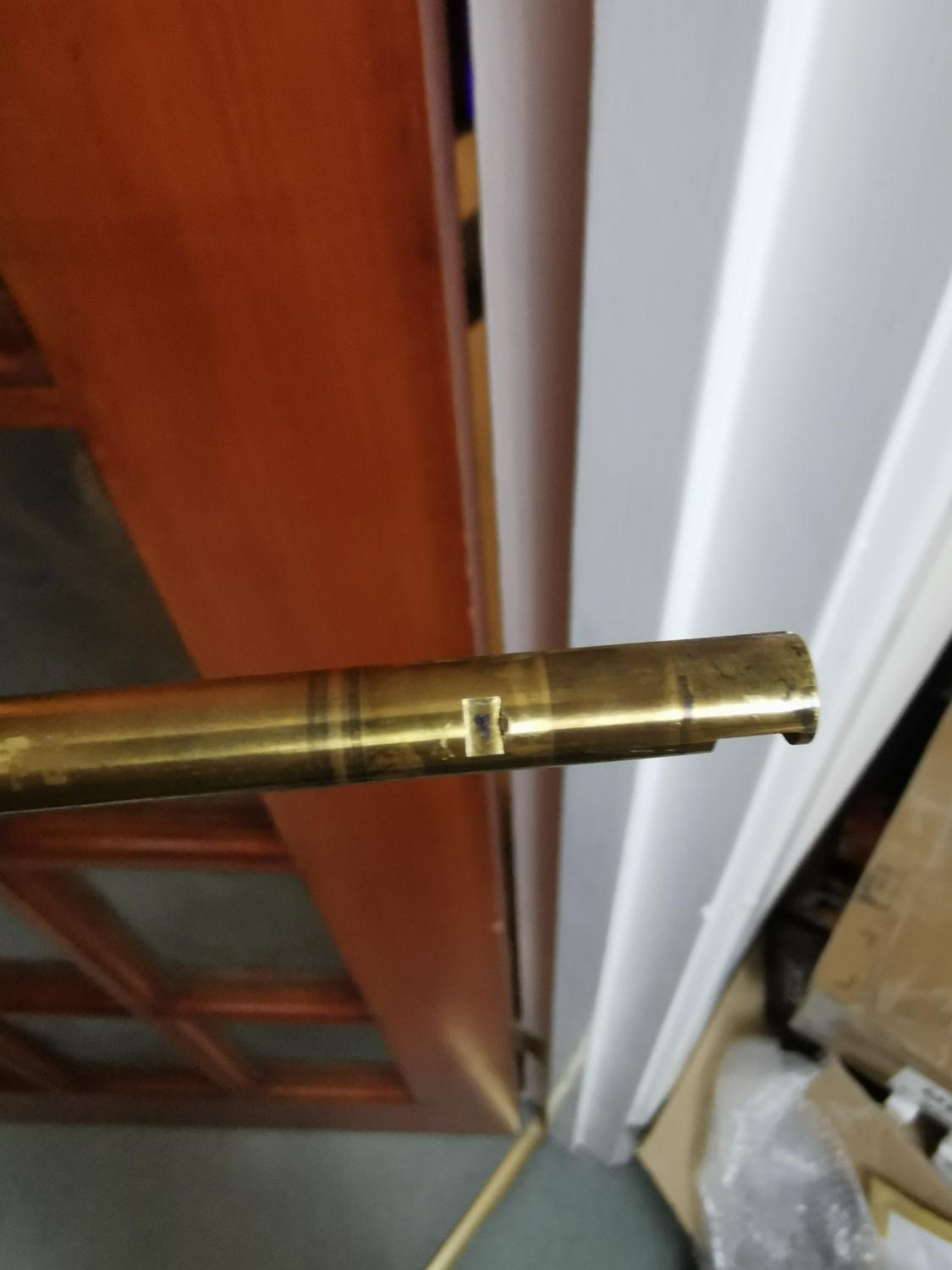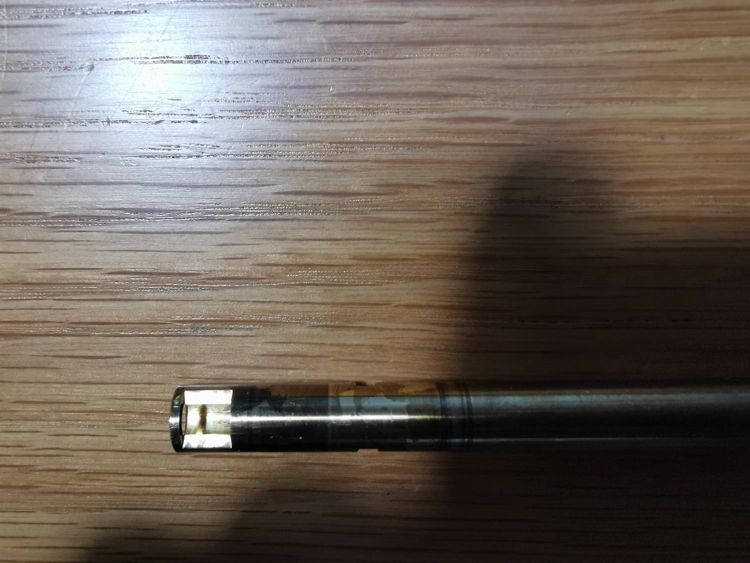 Inner surface is spotless, the outter surface has some electric tape residuls (used to stablise the inner barrel in a slightly bigger outer barrel) and also discoloring due to being brass, but mainly cosmetics and do not affect the performance of the barrel. See pictures for more details