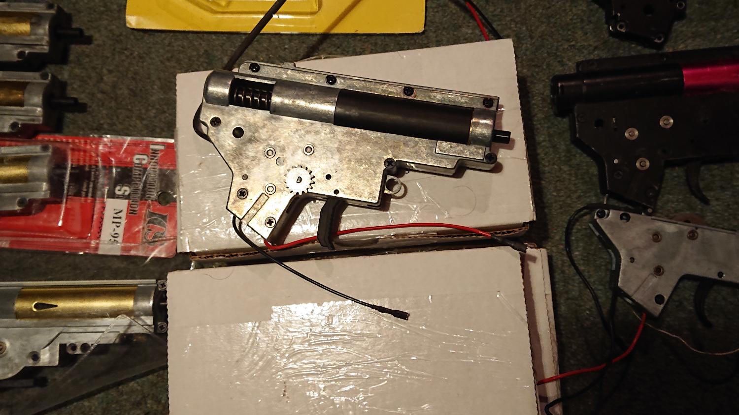 6 black and purple qd gearbox. Missing spring and spring guide. the cylinder also has a dent in the side of it. The trigger seems to be a microswitch of some kind £10