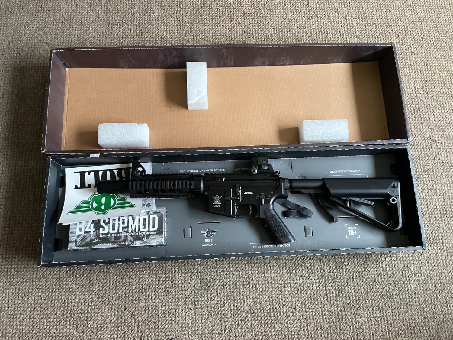 Built from Steel, Shockproof Fiberglass, Aluminium and Nylon. FPS: 335 (Tested, Skirmish Ready) Comes with a single 300 round magazine. (Takes standard M4 magazines.) Adjustable Hop-Up Electric Blow Back Rifle (Uses the Recoil Shock B.R.S.S. System) BOLT Gear set Rear wired Standard tactical rails Precision manufactured inner barrel