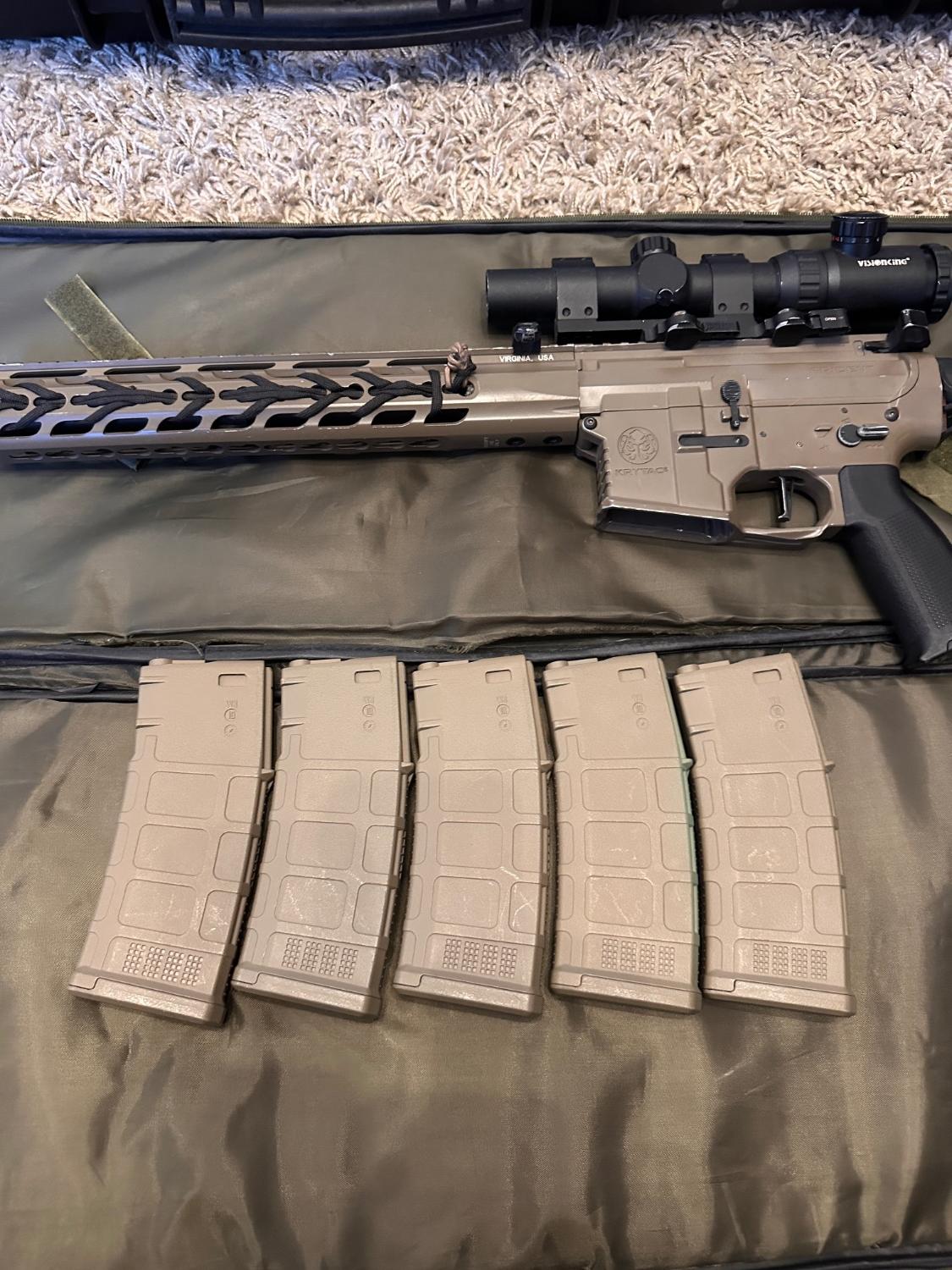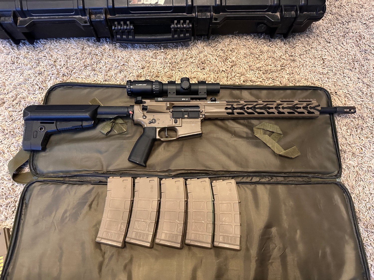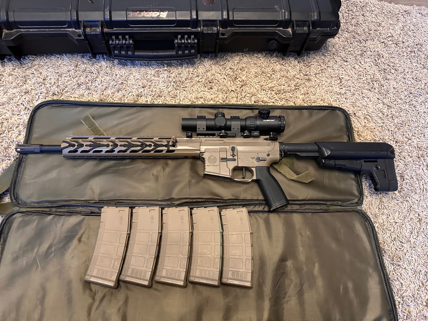 upgrades gate titan, shs gears short stroked, shs piston and piston head, prometheus barrel, flat hopped with prometheus bucking, prometheus, nonlinear spring 120