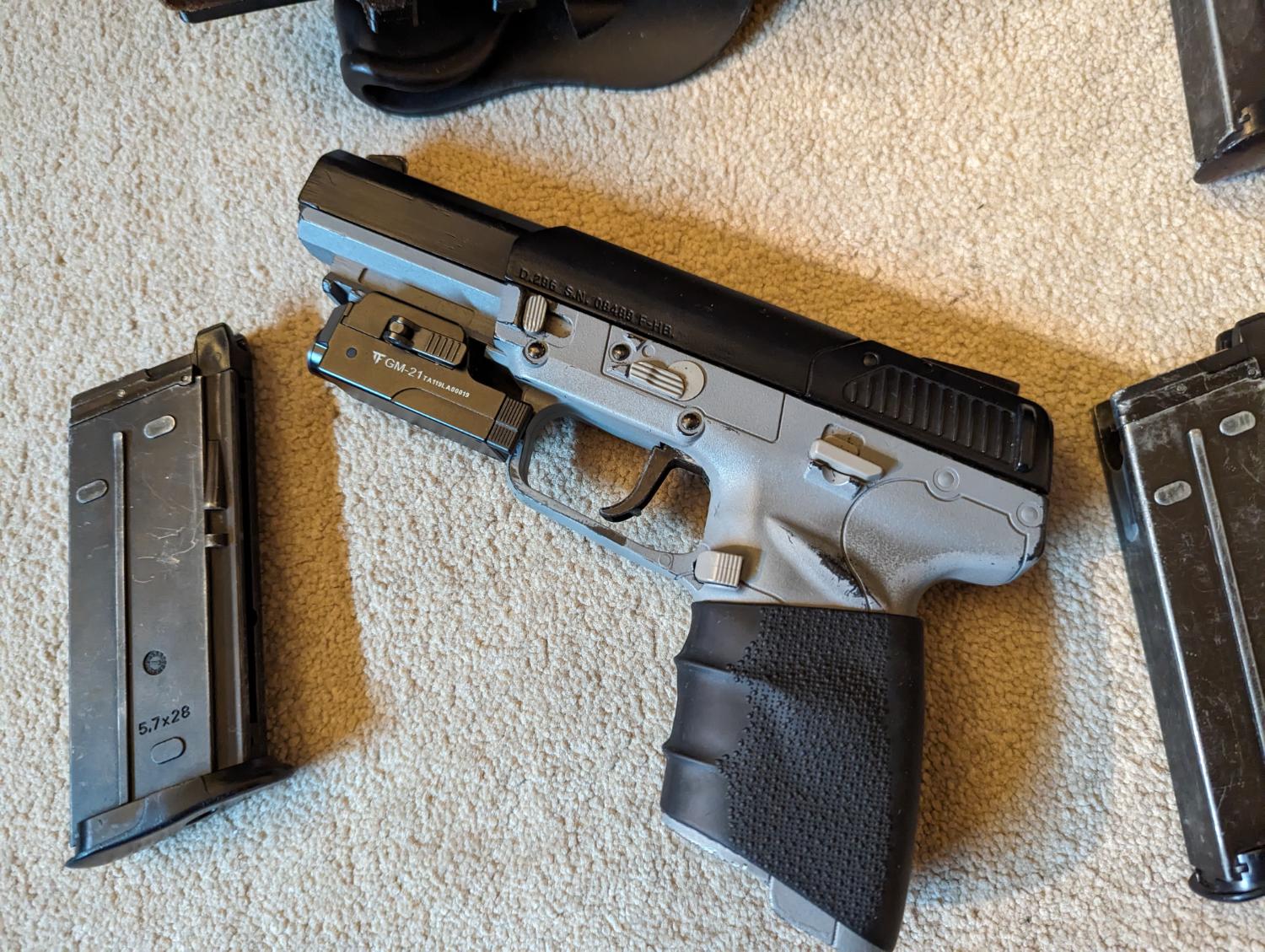 Up for sale is my TM FN57. Shoots like a dream. Comes with 4 good mags and 1 leaky mag, custom made leather holster and trust fire torch.