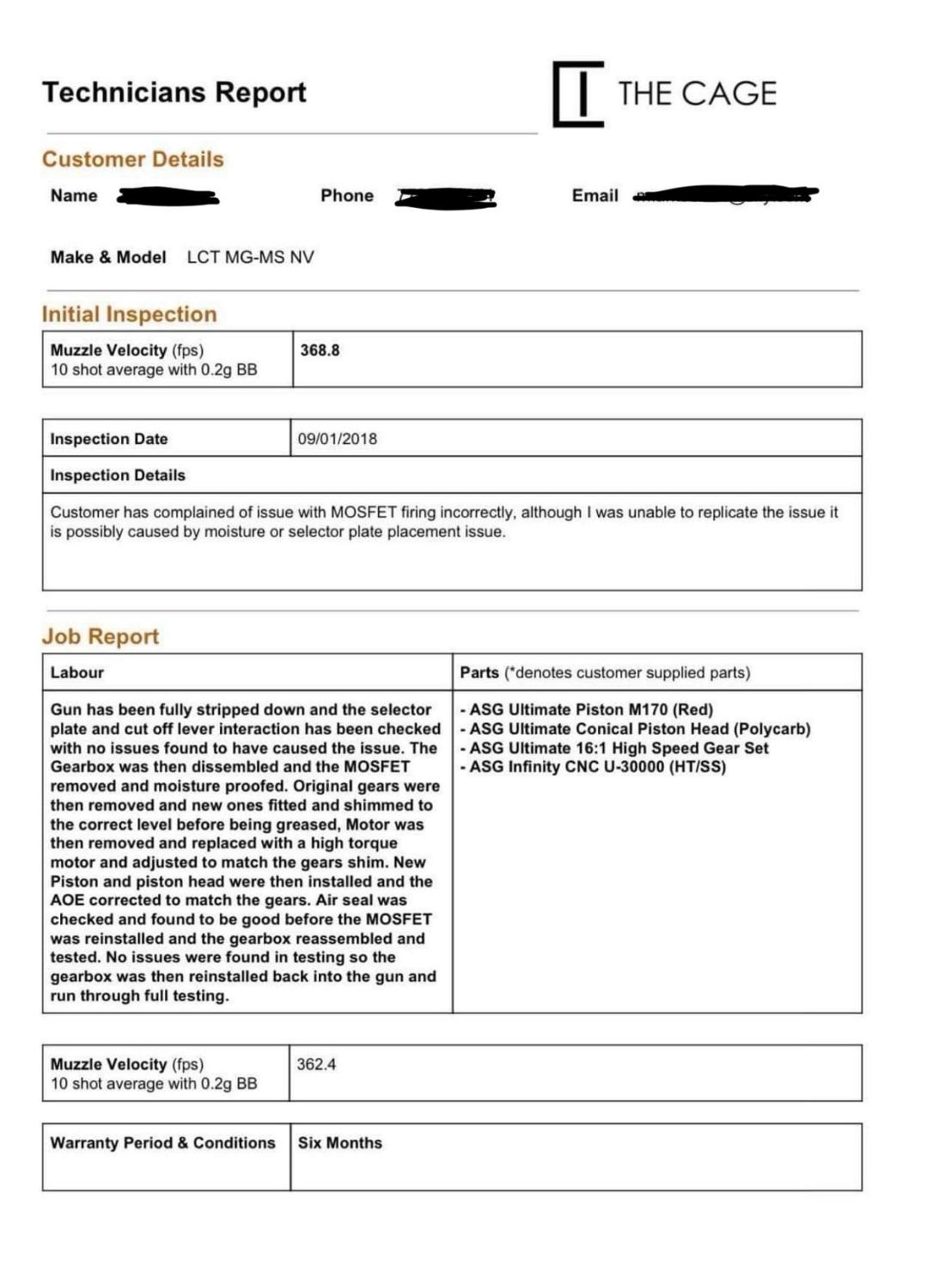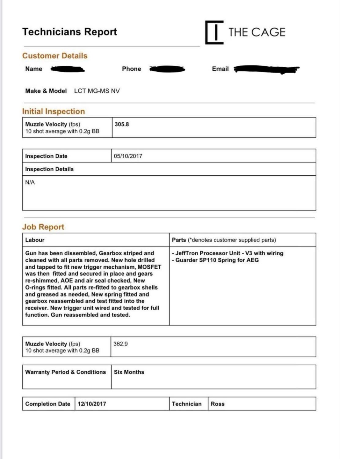 JeffTron V3 processor unit which was moisture proofed all works carried out by Ross at cage airsoft. Other upgrades he did internally were:-
