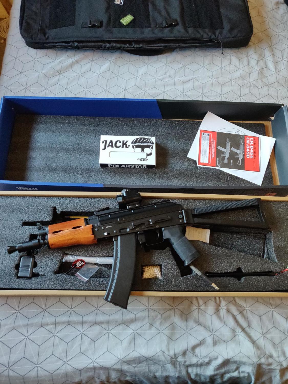Has the v3 jack for aks with an amped igl line, asg hop chamber with zci 300 mm and maple leaf macaron 50 with omega nub, sends.32 bbs at 1j at 65-70 psi.will come with a small li-ion battery to run the fcu,red dot sight, 5 mags 1 high cap 4 mid caps,all original boxes for gun and jack unit, also a railed front end that can be used if you wanted to run torches, foregrip etc. Buyer covers postage