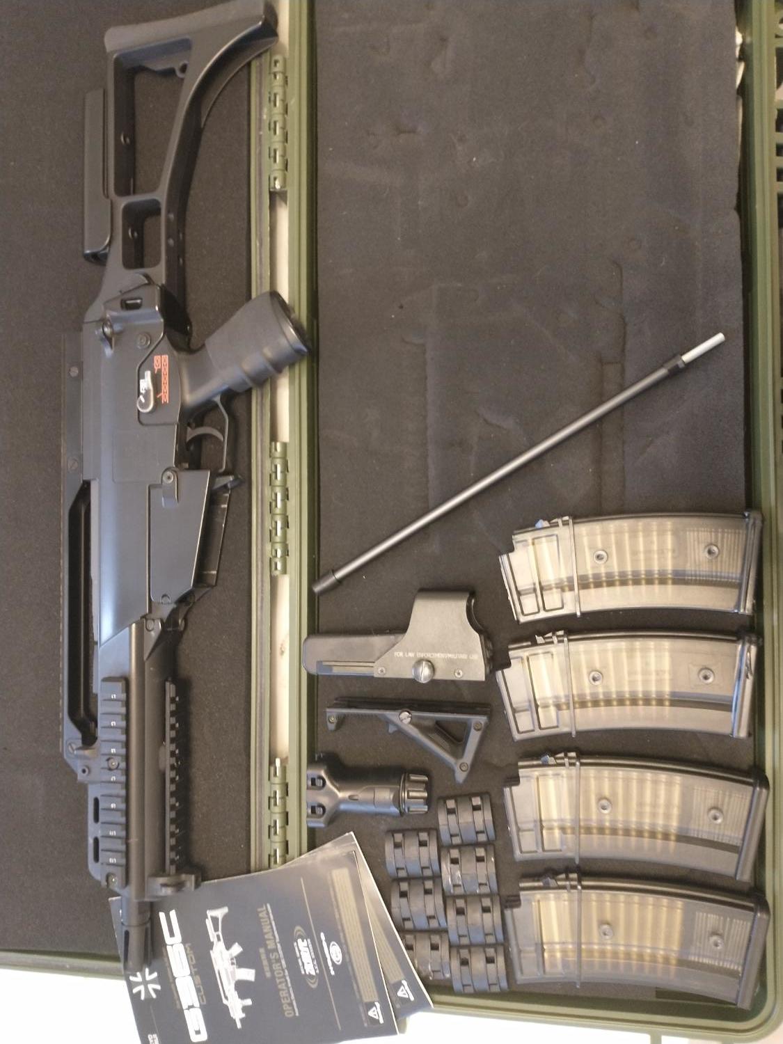 Tokyo Marui G36C AEG (recoil/next gen motor). All stock internals, no upgrades. Some very minor markings from the handful of times it was used.