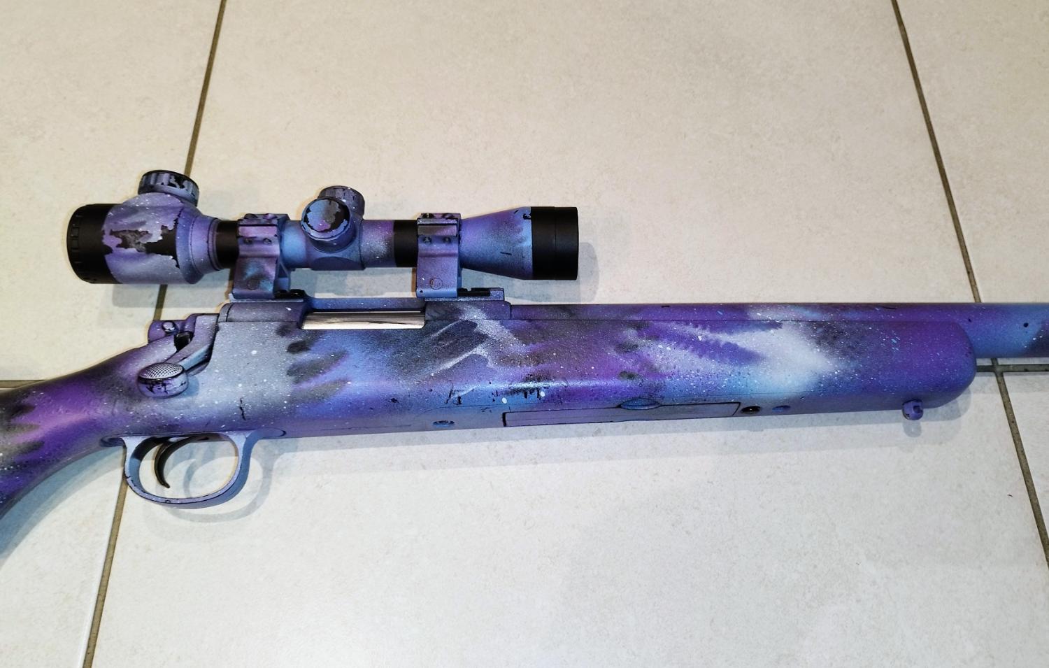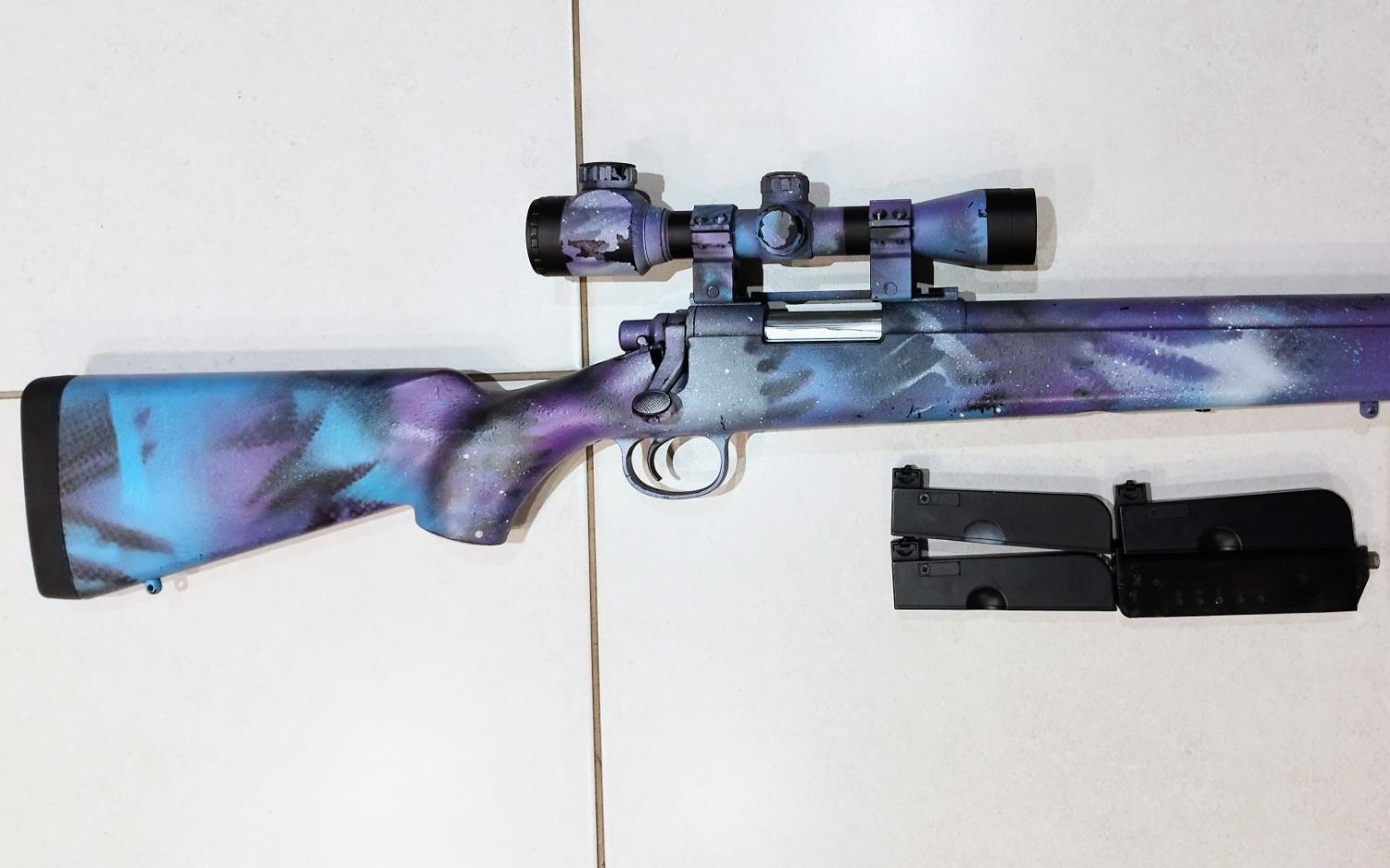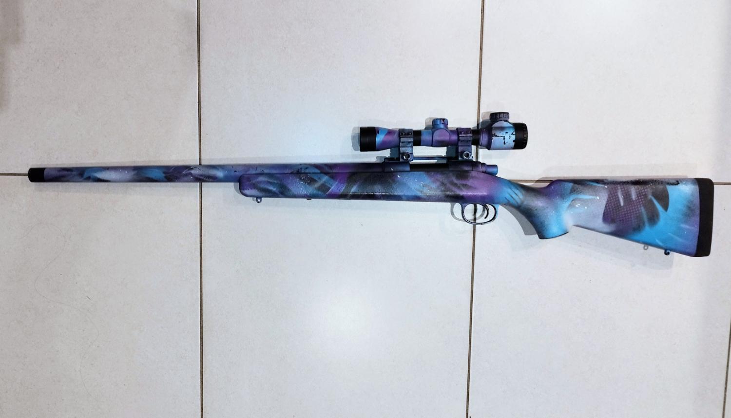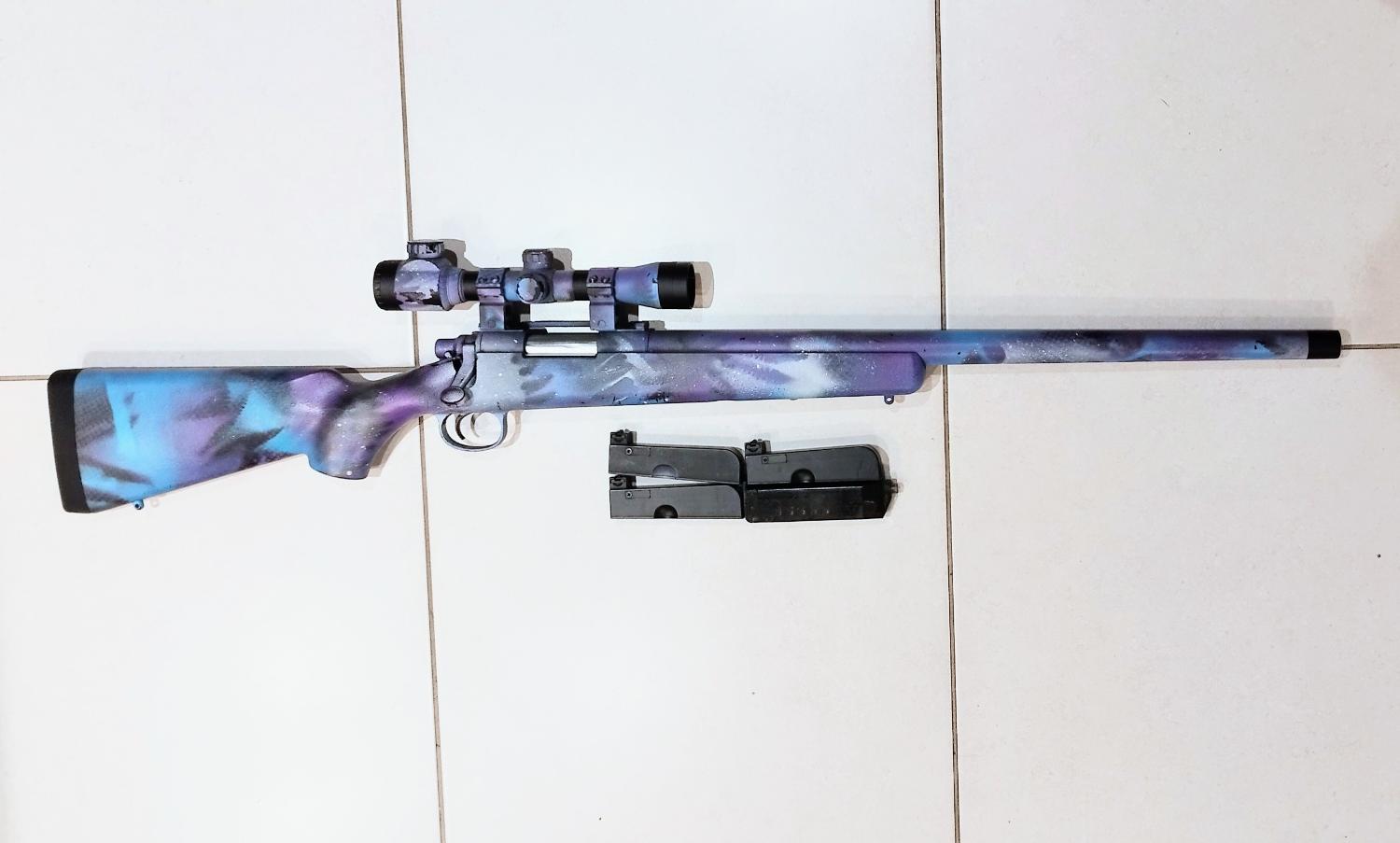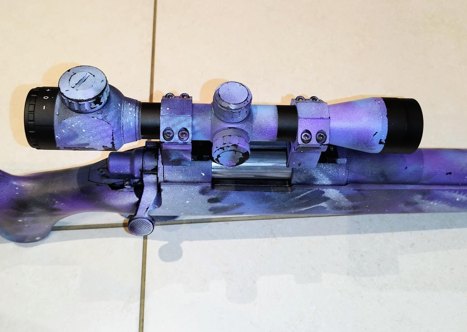 Here l have for you a nice toy, good looking for the way it was painted. All works fine as it should, shots nicely with 450fps. Due to the painting pattern counts as a Two tone so feel free to enjoy it. I guess is made by Cyma as l don't see any markings on it.