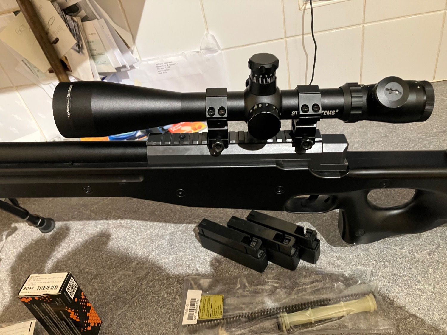Also has a asg strike system 3.5-10x scope fitted with tool less adjustments