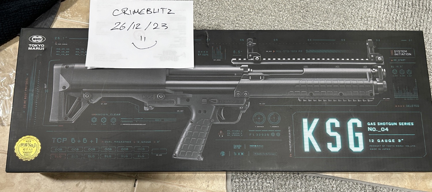 Comes complete as new in box with gas tank, tm shot shell, manuals and all usual bits you’d find in the box. I’ve estimated fps but this is totally stock and standard, so will be gas dependent.