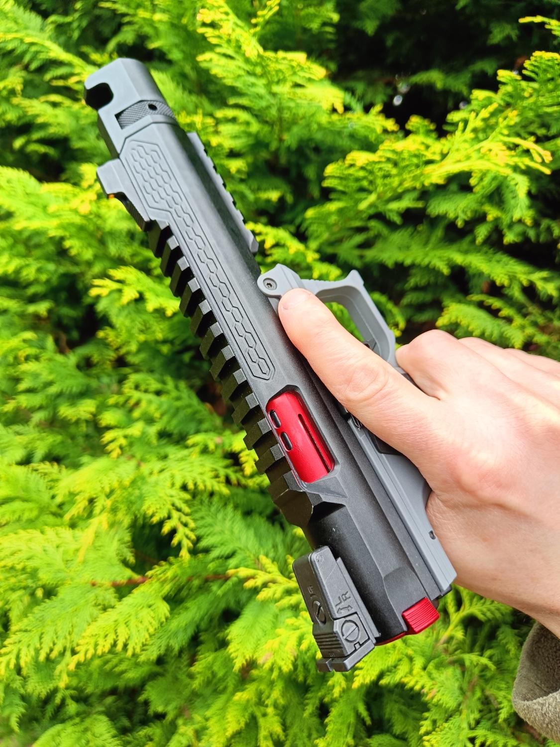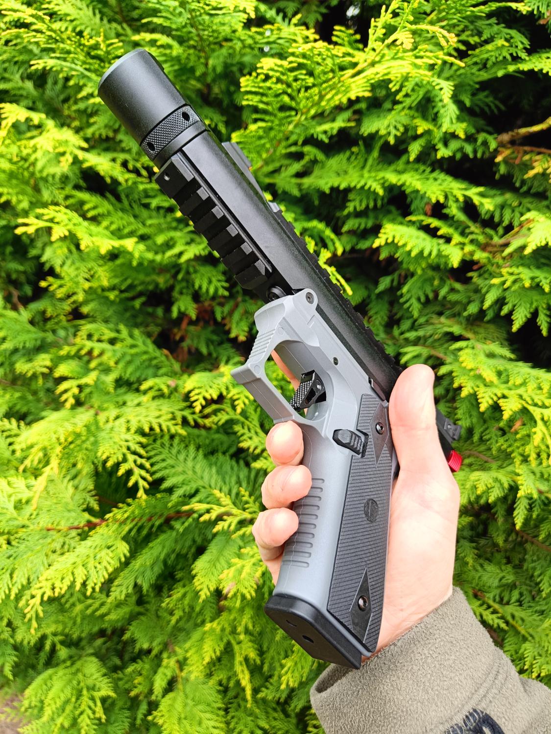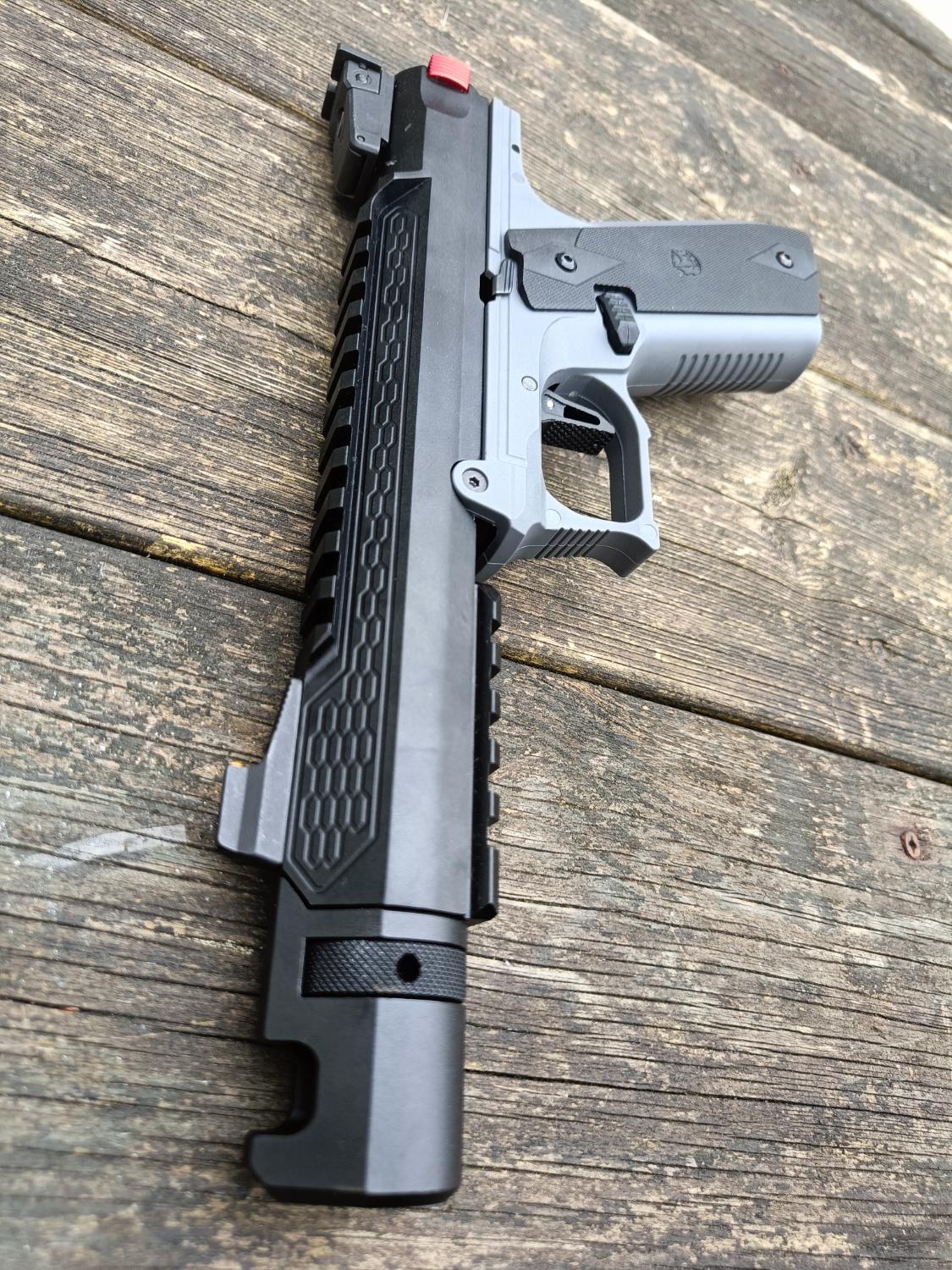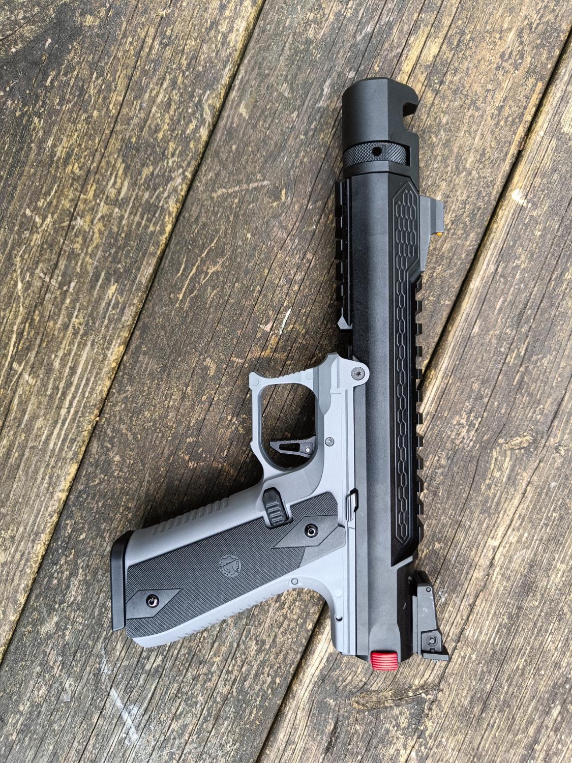 I've built several of these now, in different configurations, so know the platform very well. This particular build addresses all of the common AAP issues (weak hammer, long trigger pull and lack of rails), while maintaining the consistent feeding and shots you get from using the stock nozzle, bucking and inner barrel. This should make an excellent primary for CQB (or the enthusiastic woodland skirmisher!). This is the only gun I've been tempted to HPA tap! Providing you have the right setup, it's also not too big or heavy to holster.