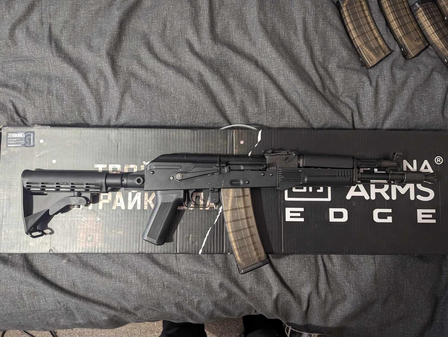 selling for my brother, was purchased from new this October and has only been skirmished once, due to him since buying a p90 he's not really interested in this anymore so this will likely only be left to one side gathering dust.