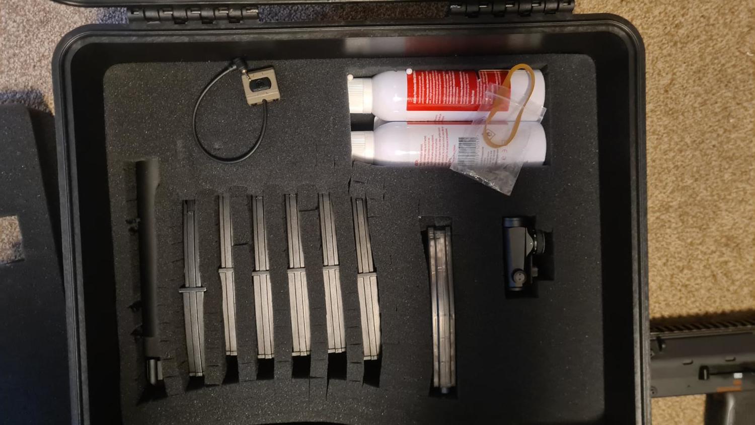 Tokyo Marui MP7 GBB, 6x leak free mags, PEQ box with IR laser and light, pressure switch, QD MP7 suppresser, M4 style speed loader, aftermarket T1 style red dot plus Nuprol hardcase with plug foam, great GBB SMG sad to see it go, £550 collexctipn from Portsmouth or meet up within an 1 hour