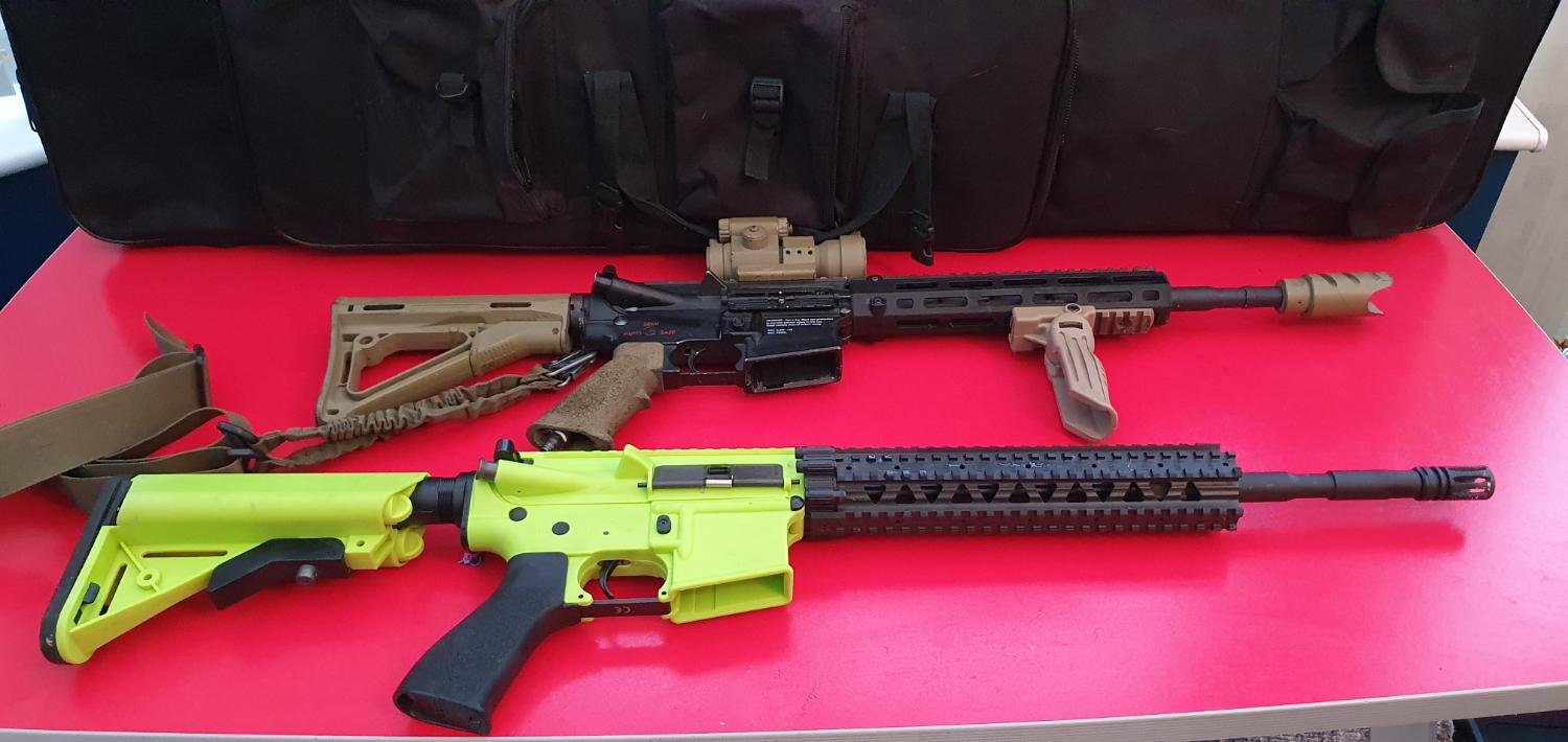 Dad and lad. We are selling the Tippman Arms M4 Carbine CAl6mm airsoft gun with 2 gas bottles, connector cable, red dot scope and shoulder strap, plus the Electric AEG 6mm pellet semi auto system which is ideal for 12yrs plus. All items in photo which include waist fitted ammo magazine belt, the Viper VX gas bottle rucksack, 3magazines, fast loader and spare strap. The overall value is over £500 but we would like to sell as job lot for £425 or very near offer. The AEG does require a service, it has low power, technician advised might be rubber seal or hop replacement but could be dealt with in service. Could meet at Humber Airsoft South Ferriby or collect from HU15. no courier collection or post.
