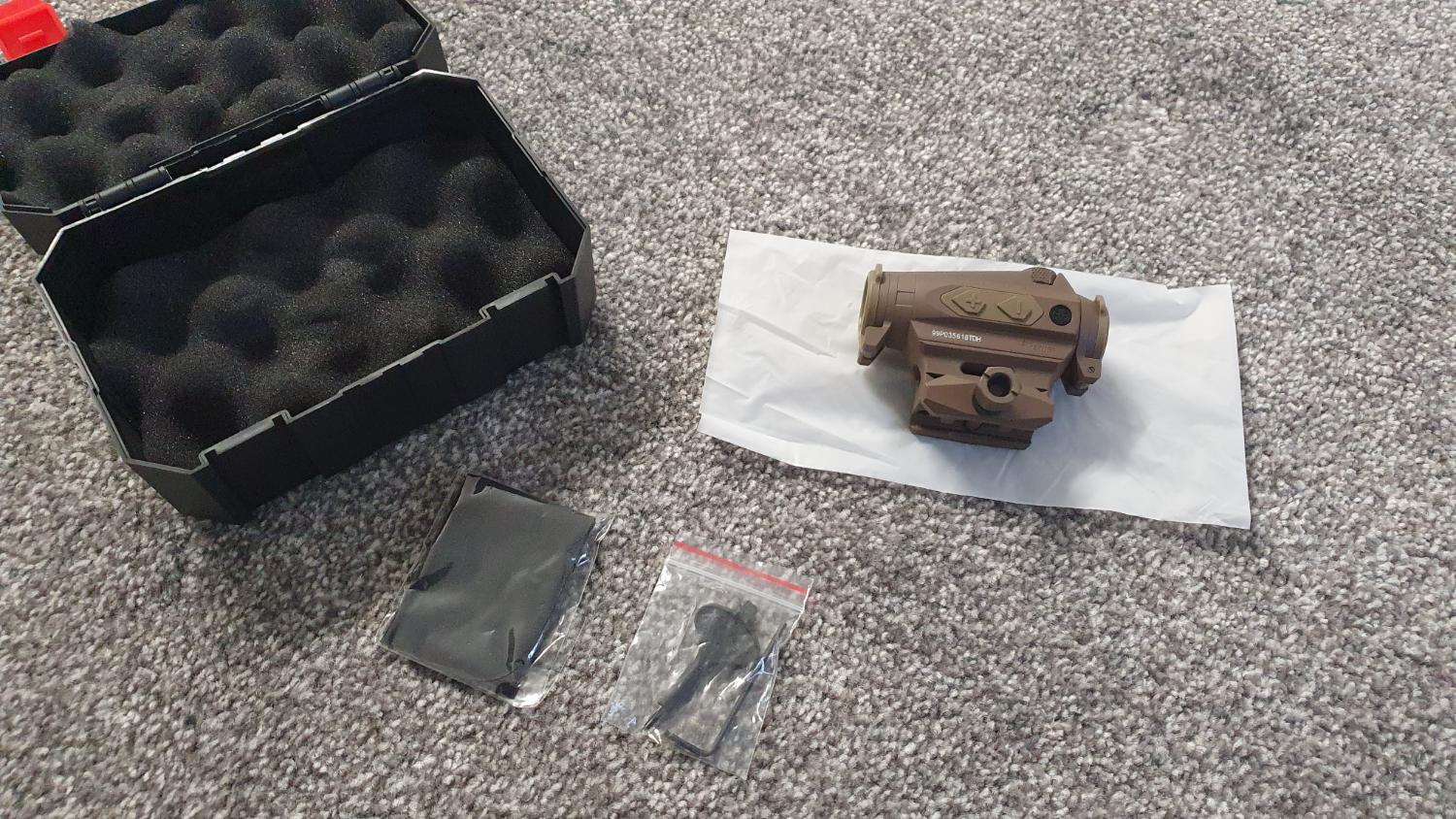 It comes with clear lense covers, a 1.41 absolute co-witness mount, cloth and tools, all wrapped up in one of Evolution Gears usual hard cases, battery fitted.