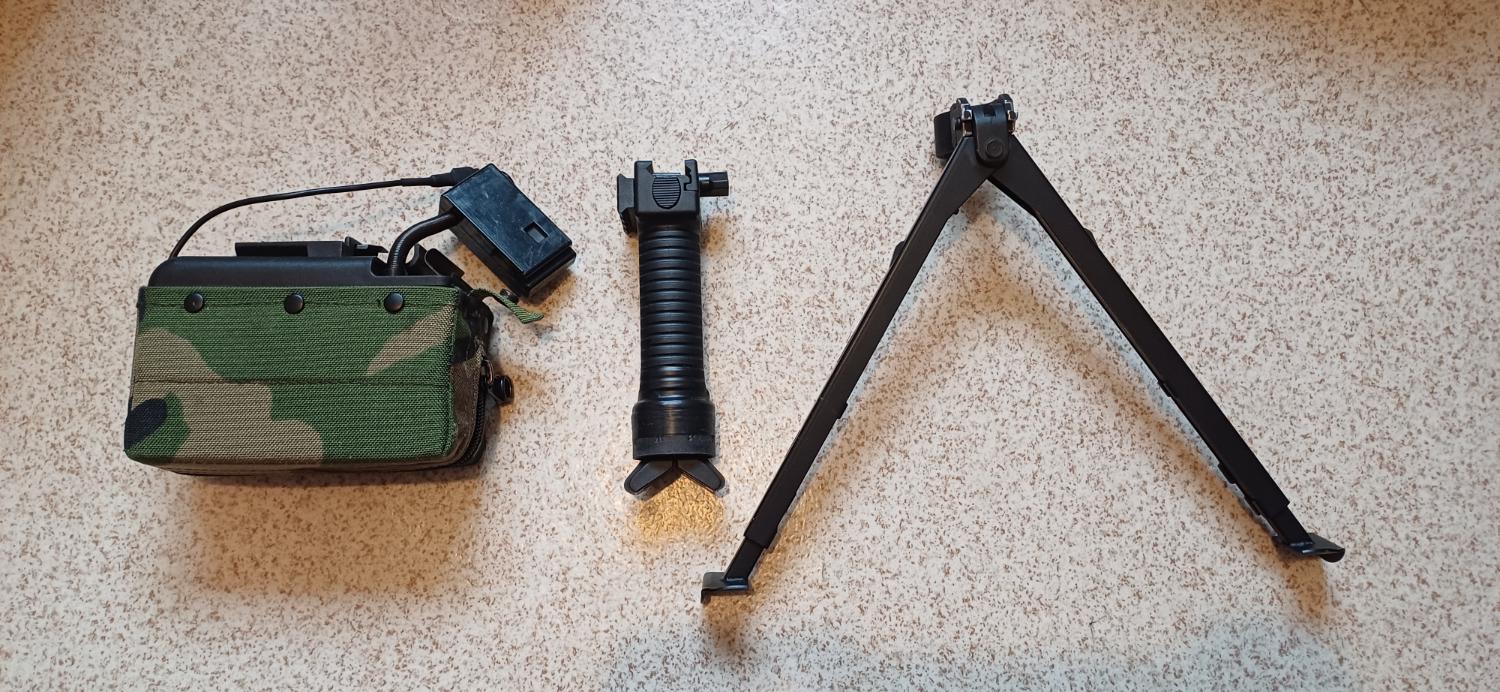 A&K M249 Para with MOSFET, box mag, grip pod and bipod