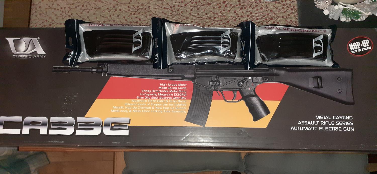 As its gathering dust and will never get used since i bought it in the summer selling my CA33E as i have an LCT G3 as a main rifle this was bought new by me with 3x extra hicaps and comes with an M110 spring and wired to deans before being shipped to me. Looking for 170 posted etc or 150 collected.