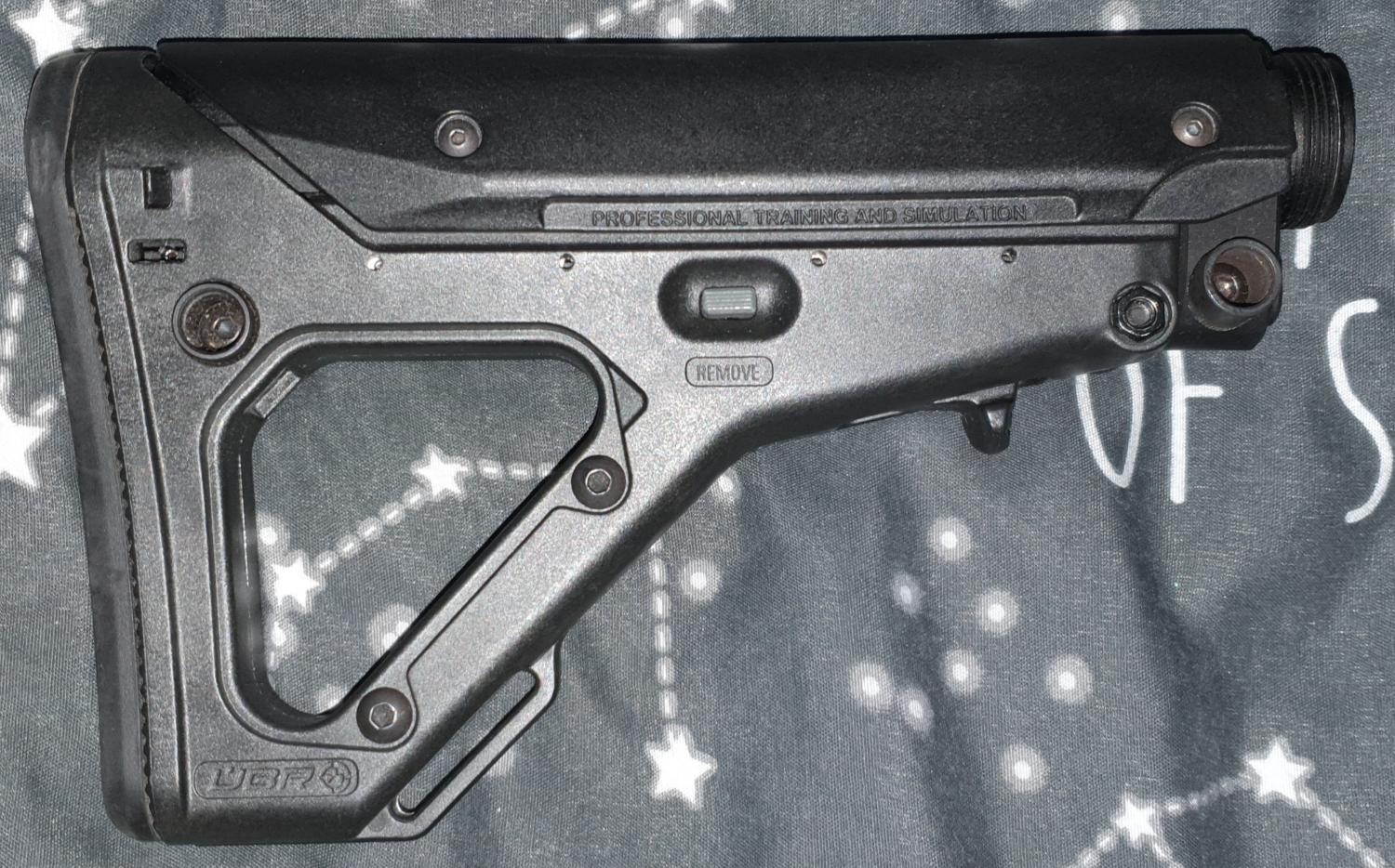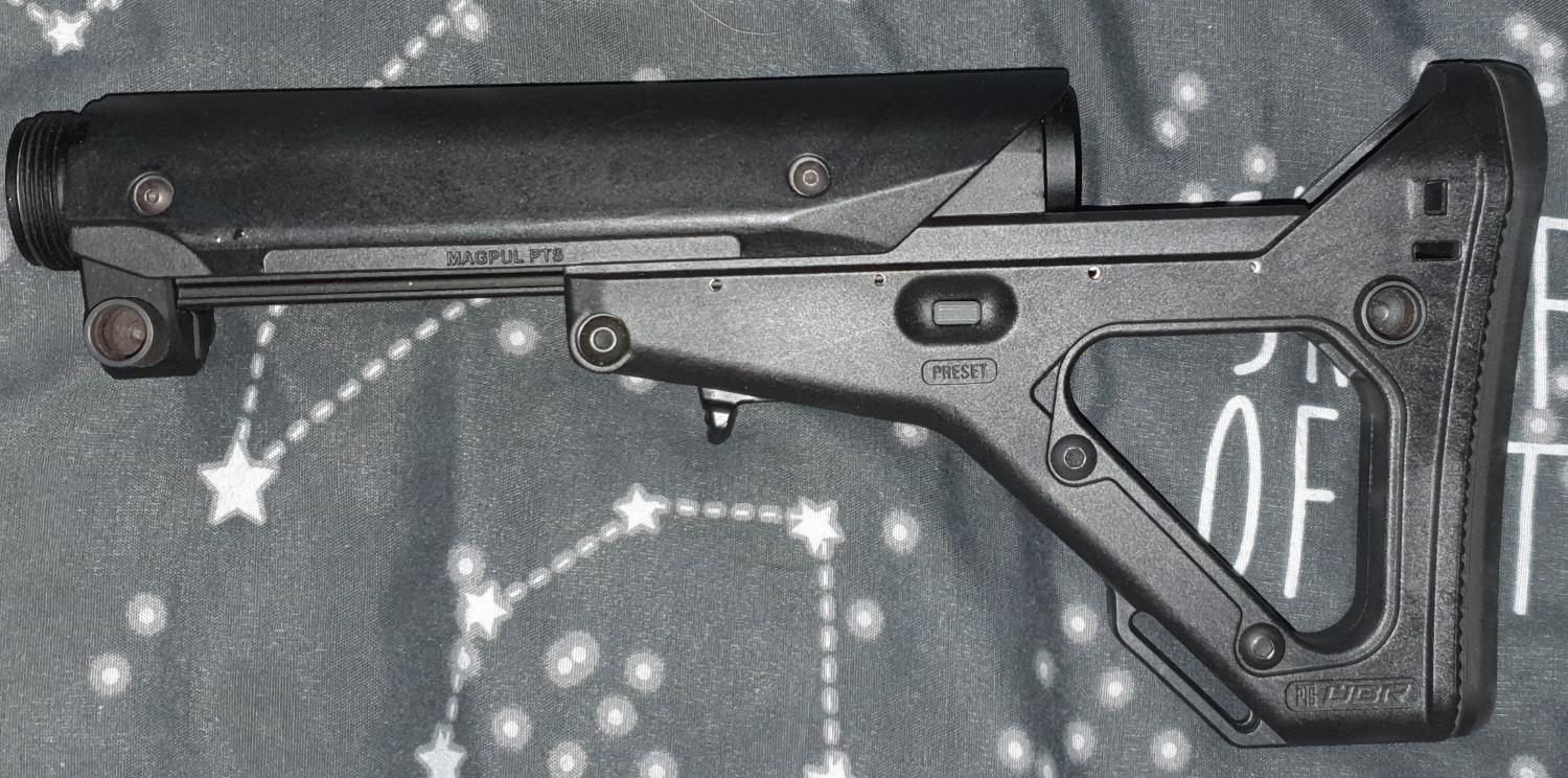 Magpul PTS UBR stock GBBR storage compartment side panels (not pictured) also included.