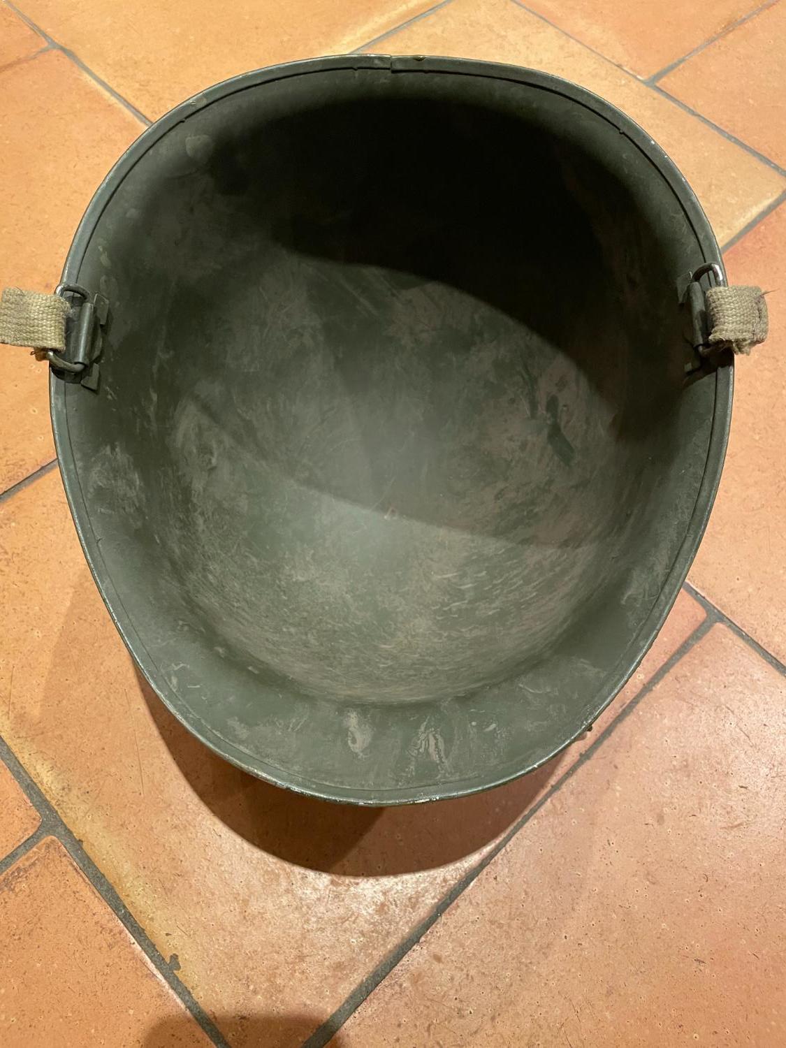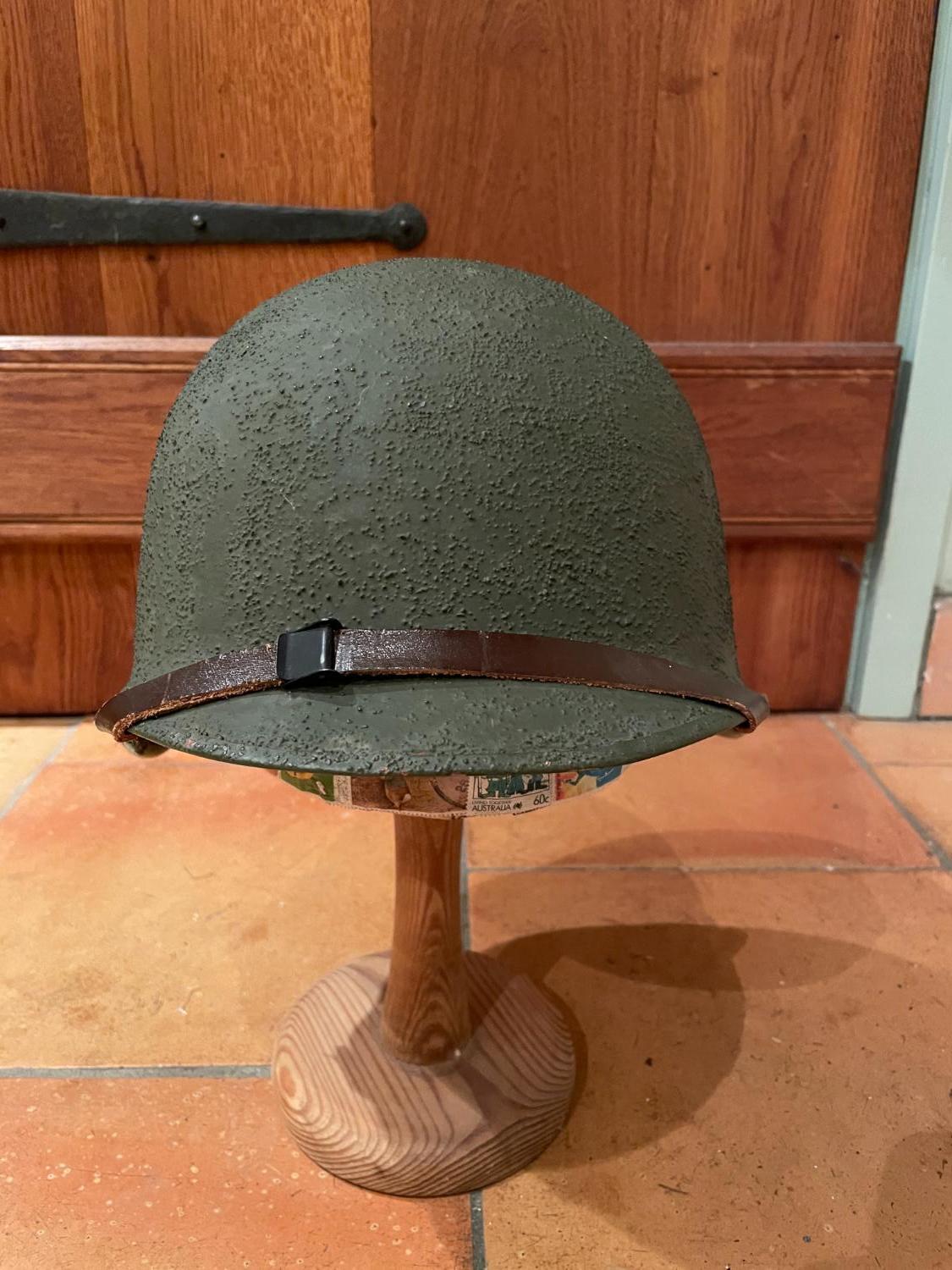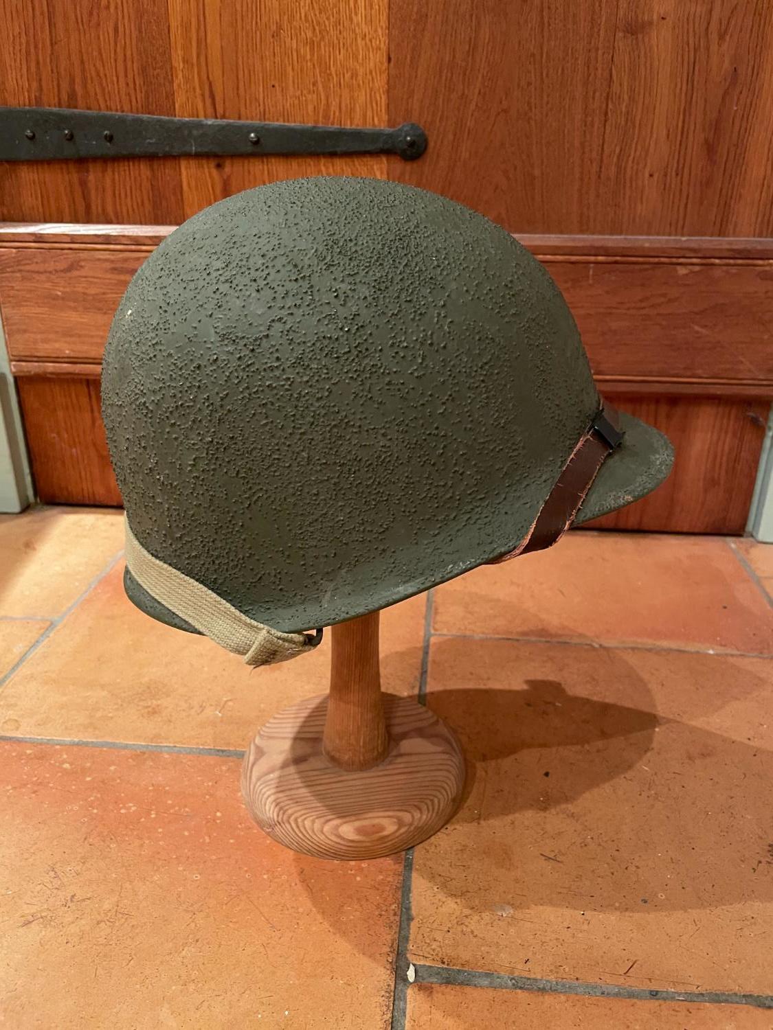 Genuine US Post-War M1 Helmet which has been professionally refurbished and converted to a WW2 Style American Combat Helmet.