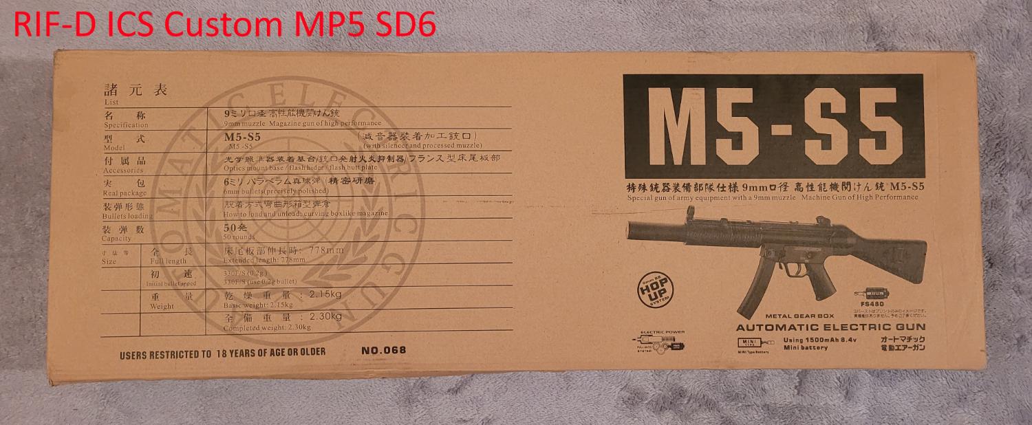 This is one of my first custom guns. It started as a cheap JG MP5 SD5 and I purchased an ICS Metal body kit which was not cheap. Dropped in a reinforced V2 Gearbox and a stronger spring and a better motor. Wired it to Deans and put it in a NANO ASR Mosfet and it purrs like a kitten. Wired to deans. It's not the most accurate gun for long range but for its intended usage is up close and personal. It certainly does the trick. The metal magazines have a little issue with feeding and I have had to modify them slightly to fit into the gun. The plastic mid-caps work flawlessly.