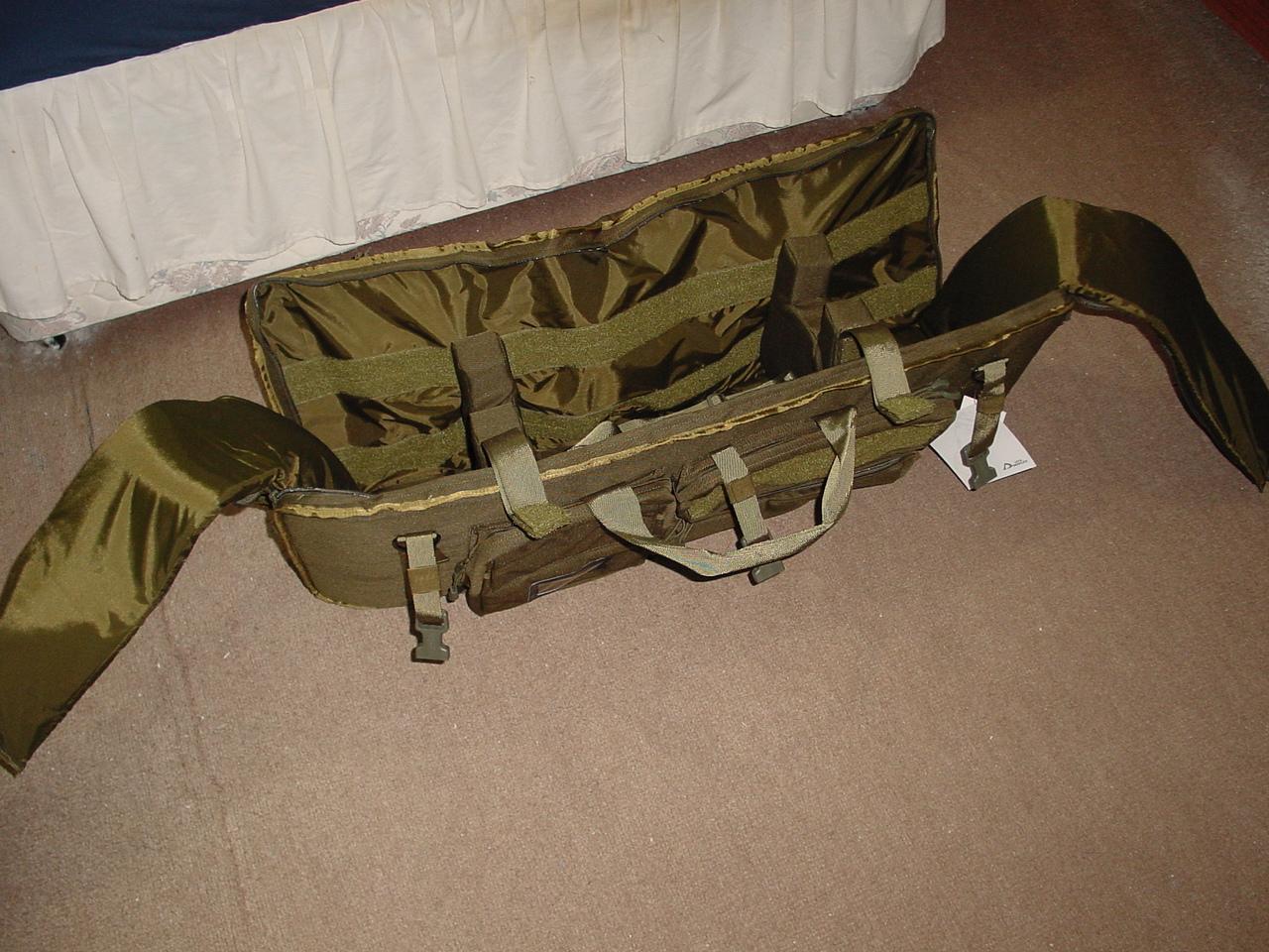 This is a Defcon 5 padded corduroy tactical storage/carry case for an M249 or Minimi Squad Automatic Weapon. It will of course fit other weapons of similar dimensions. It is in brand new unused condition complete with tags. It has many zippered storage compartments, an external shoulder strap and two internal support pillars for the weapon that can be adjusted to suit. It is made to a very high standard. The internal usable length dimension is about 35" maximum. Add £8 postage to any mainland UK address. I will accept sensible offers, bearing in mind that this was well over £100 when bought firsthand.