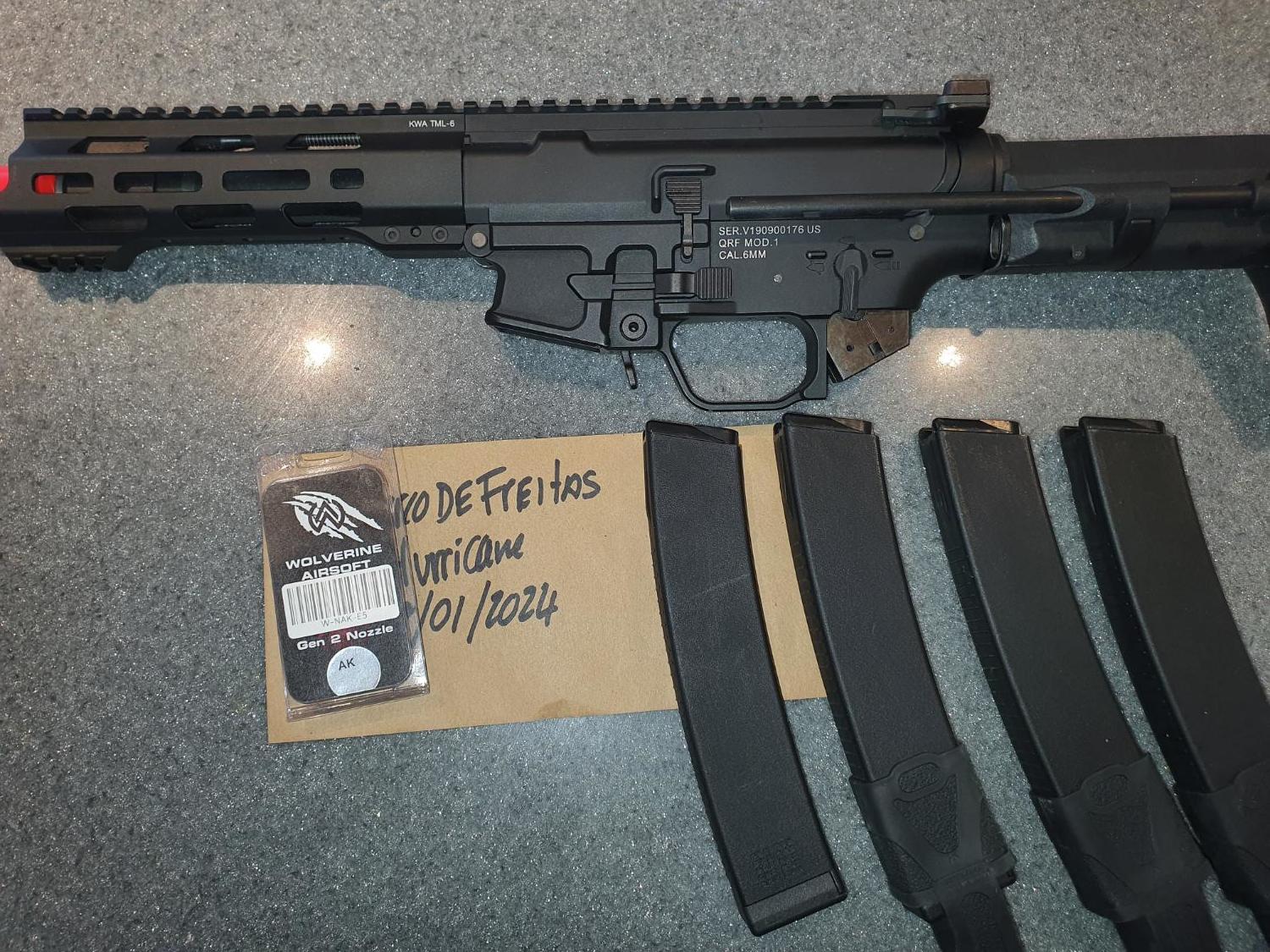 Kwa qrf mod 1 shell only this gun had a polarstar kythera, I only bought this for the engine, so what you see is what you get this would be a good build for a hpa system ie: wolverine inferno, polarstar jack etc, so anything with an fcu and trigger board, it's got the kwa gearbox that's been modified to take a hpa engine and the lower has been modified to take a cnc hop unit, if you're going to use a different hop unit other than the standard kwa you will have to take 2mm of the feed tube, so that the mag cach works or just order a kwa qrf mod1 original hop unit, i will include an ak wolverine inferno nozzle for wolverine hpa build and yes the mags are include 4x 80 rnd £100 that includes PayPal and post