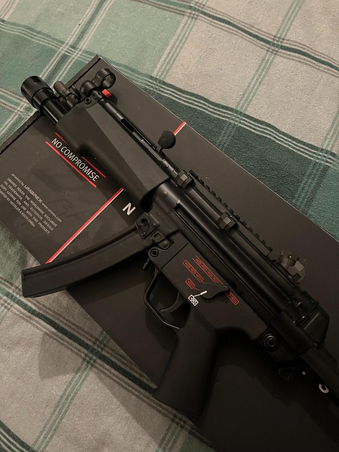 Here I have my umarex MP5 A5 GBBR Version 2. If you don’t know about these please Google them and see what they’re about. It’s as new condition only left the box to test fire and hang on the wall.