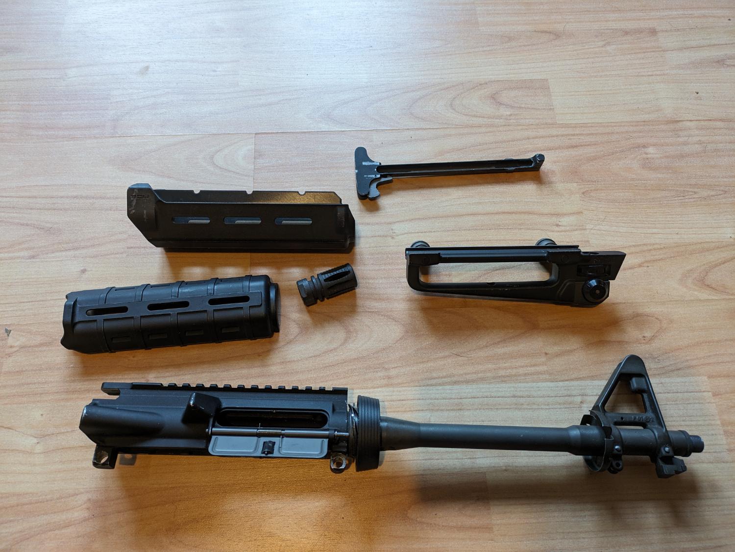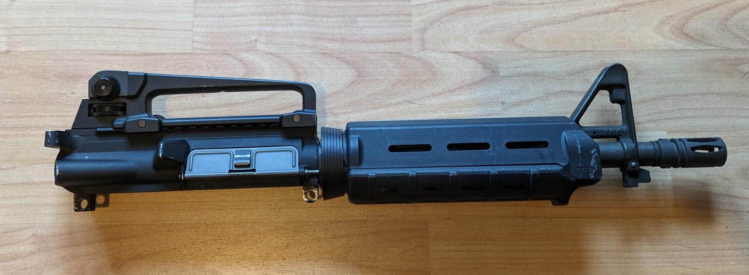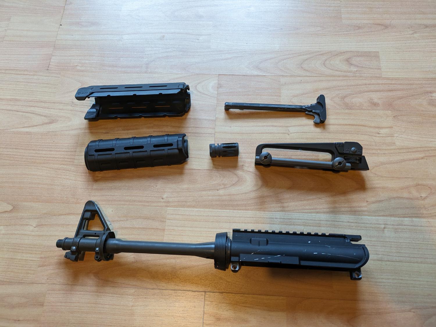 WE M4 open bolt GBBR Upper with PTS MOE handguard, carry handle iron sight, charging handle inner barrel and hop unit.