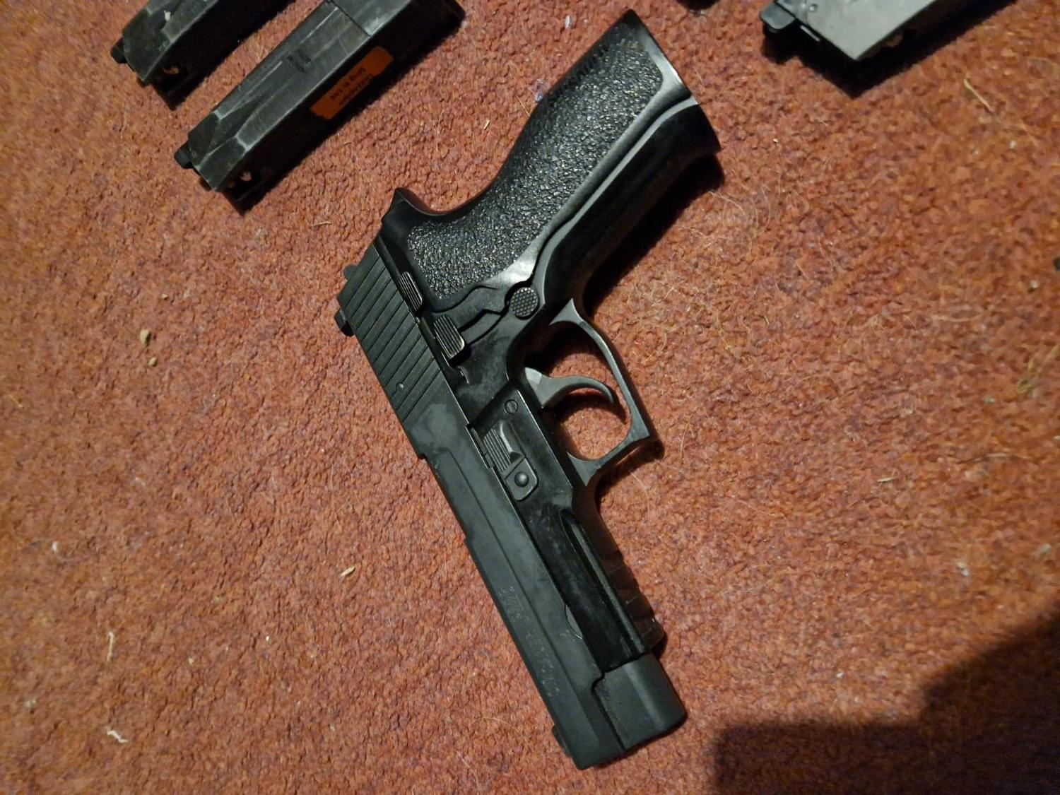 1 x tm p226 e2, this was my go to pistol when skirmishing so has seen lots of use. Comes with 6 mags.