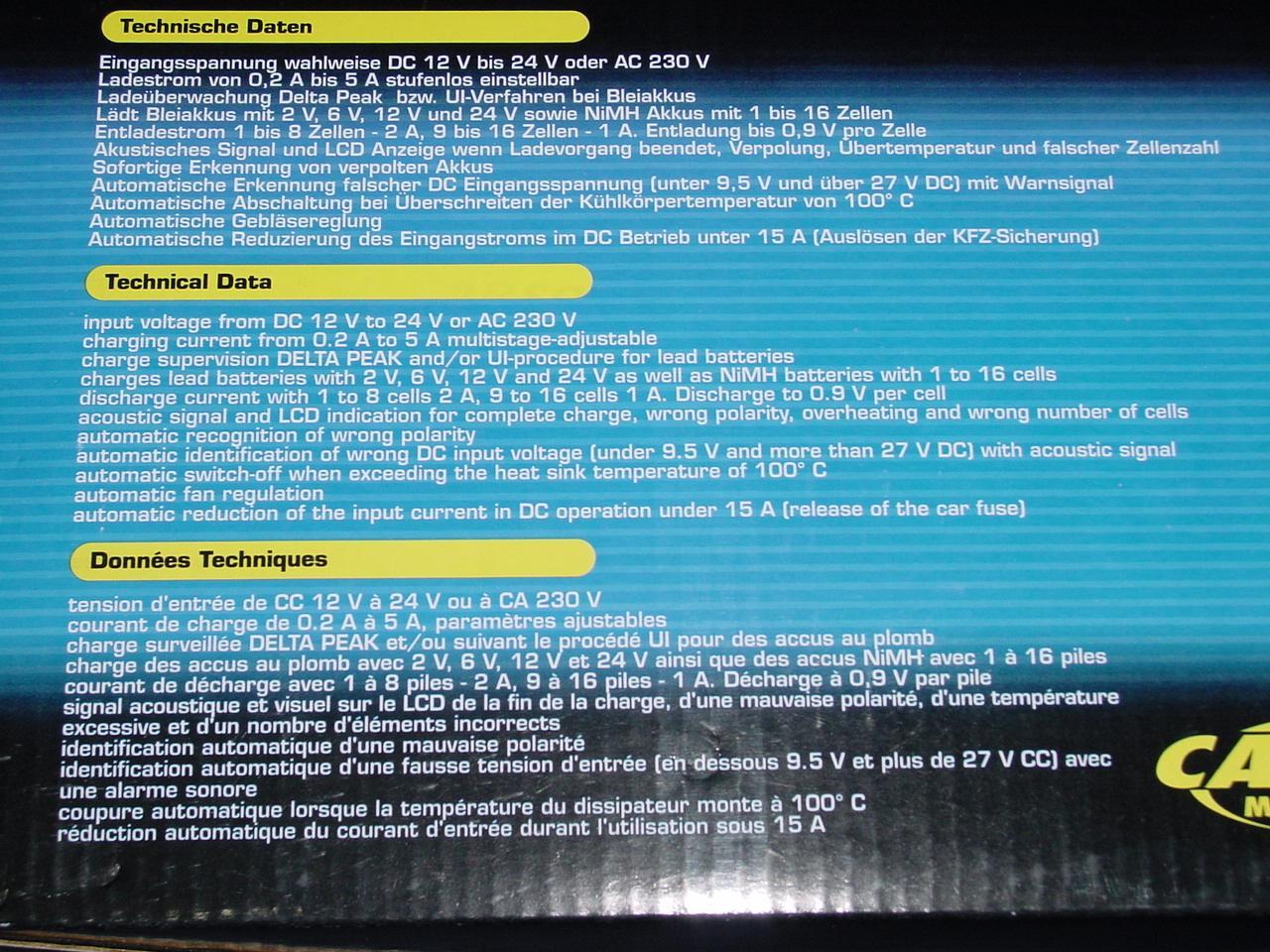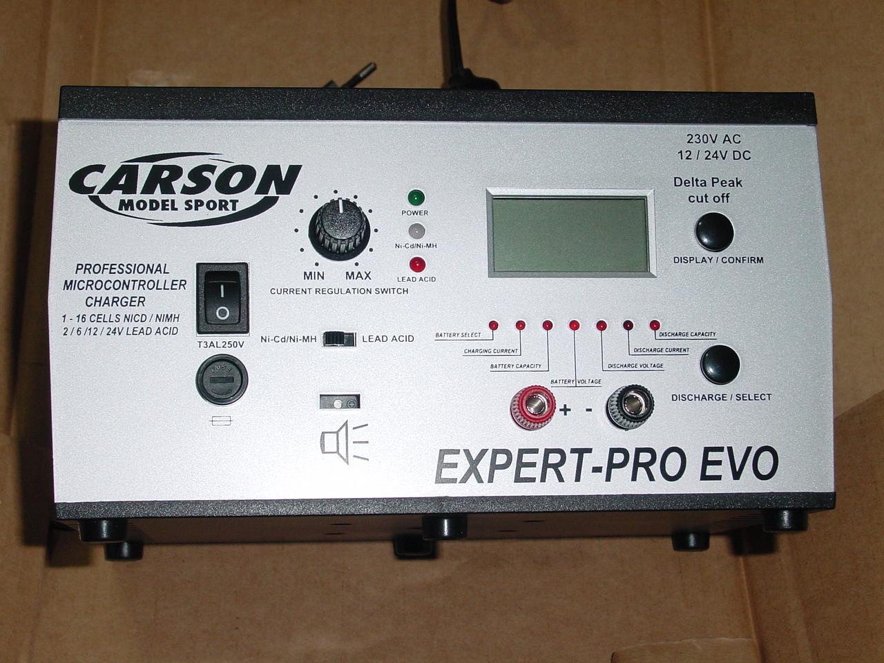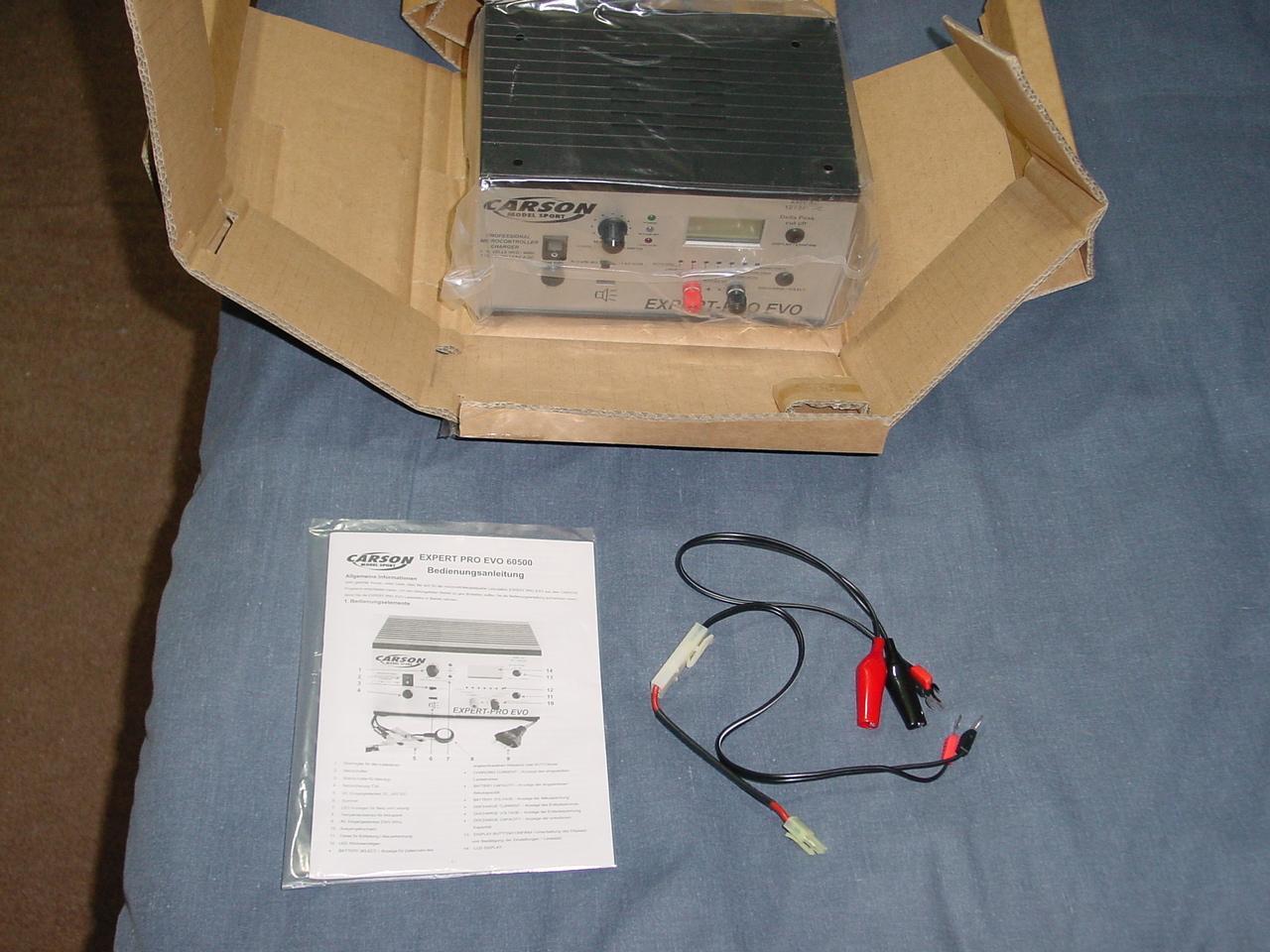 This is a Carson Expert Pro Evo 605000charging station for lead-acid, NiCad and NiMh batteries. It is in as-new condition with all accessories, original English instructions and packaging. It features Tamiya/Kyosho/mimi Tamiya plug adapters, crocodile clips, overheat sensor that attaches magnetically to the battery being charged, LCD status screen, inbuilt cooling fan, audible alerts, and operates on 220-240V mains. It is a sophisticated unit. Output is 1.2V - 19.2V 5Amps max. Please add £6 postage to any mainland UK address.