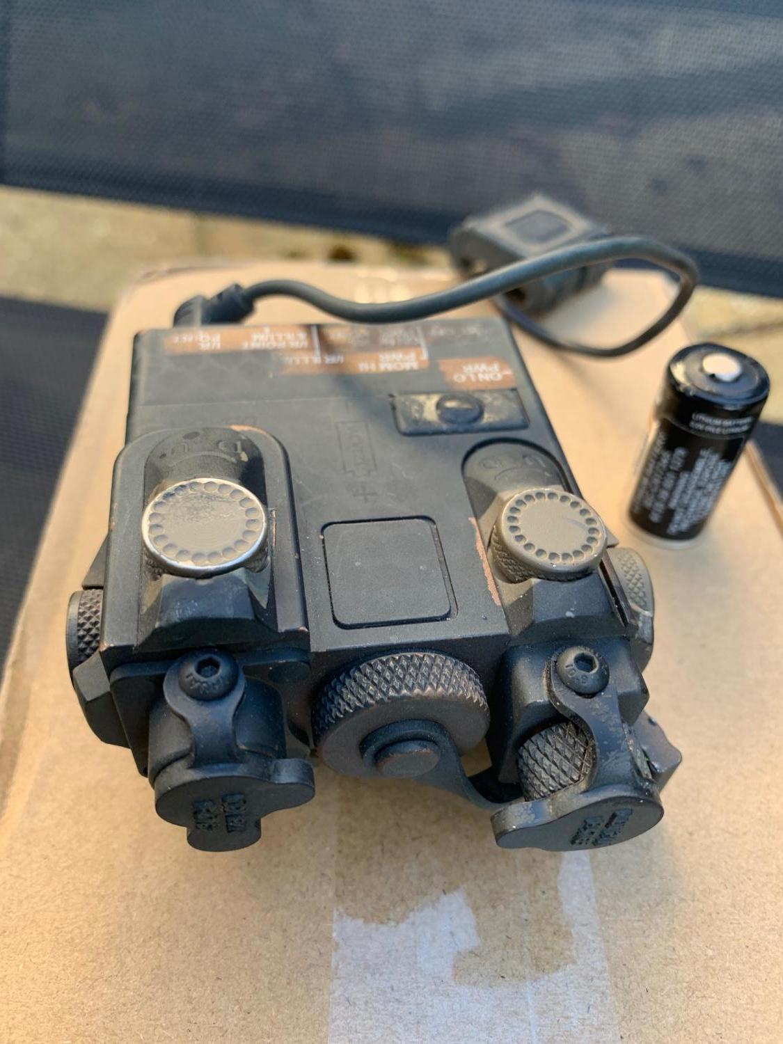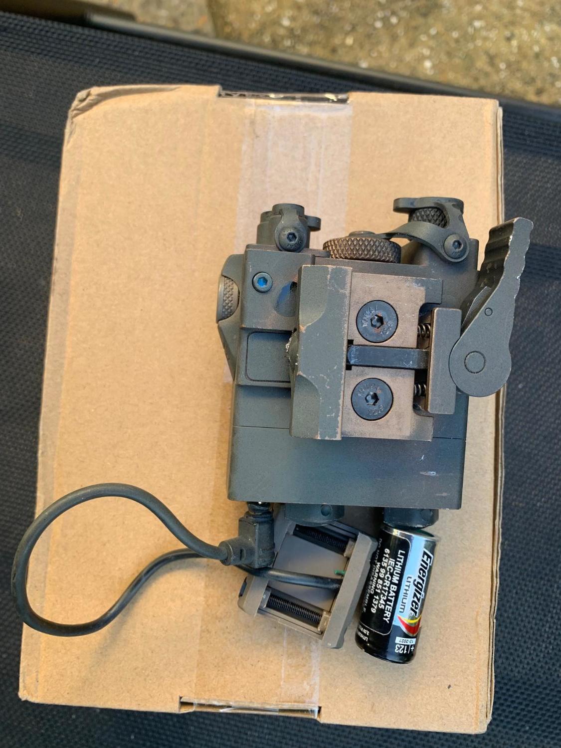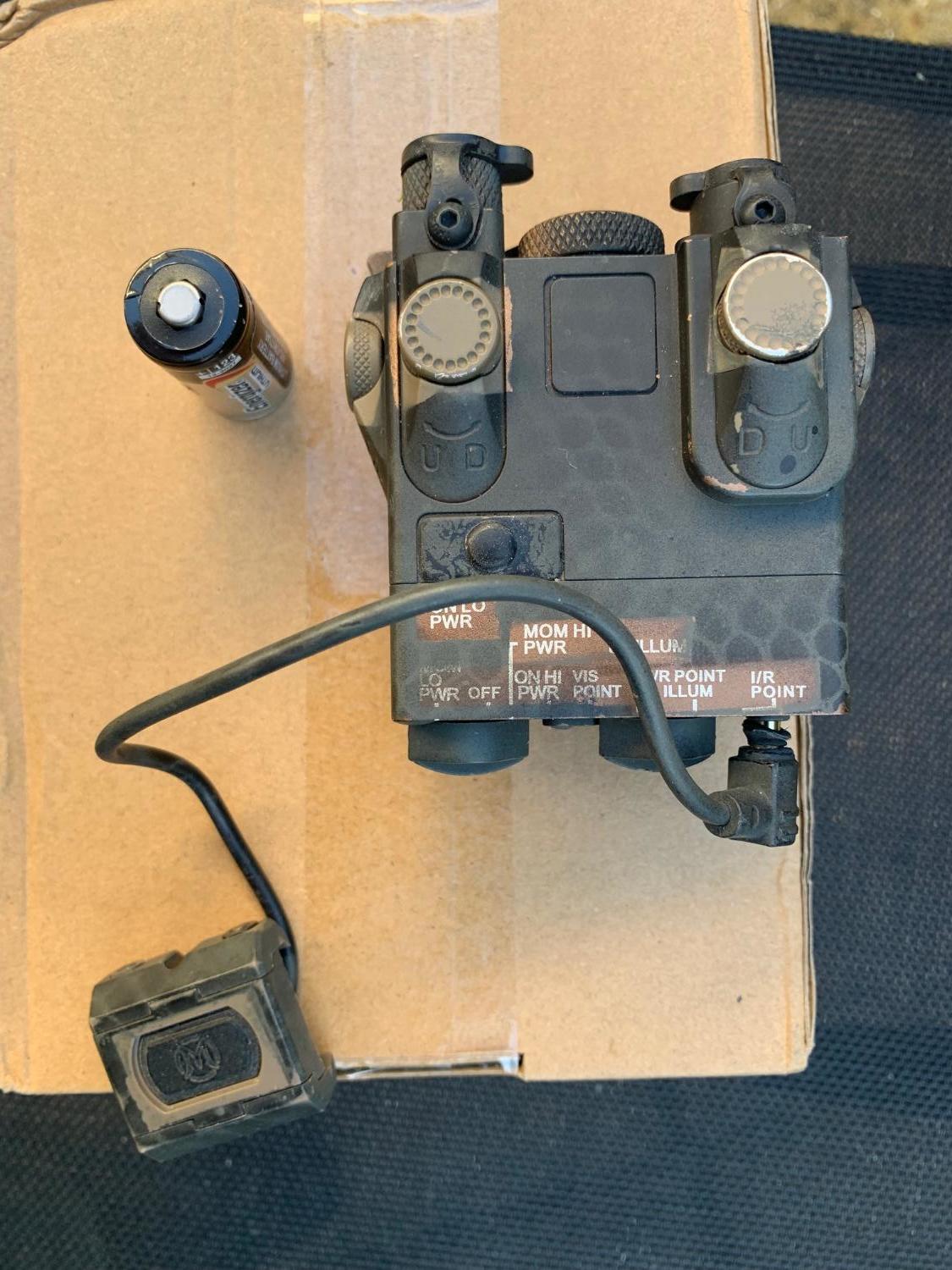 Metal construction, comes with mod button to fit picatinny rail and battery.