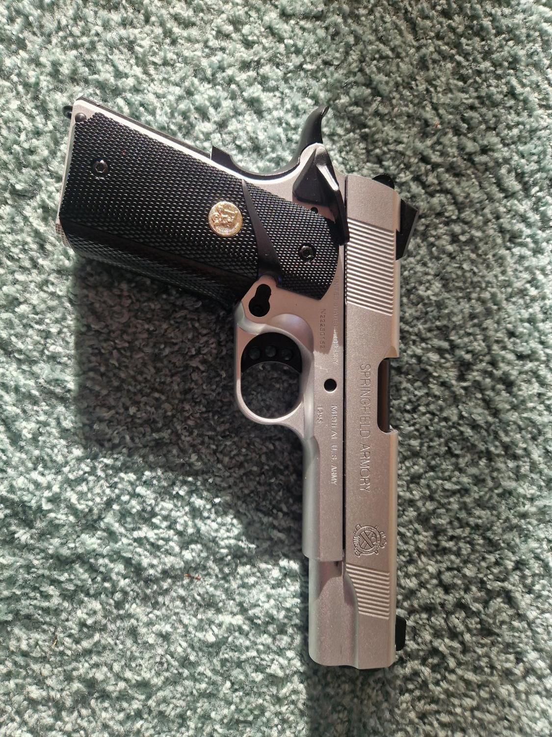 For sale army action 1911 with maple leaf rubber and original box but no magazine.