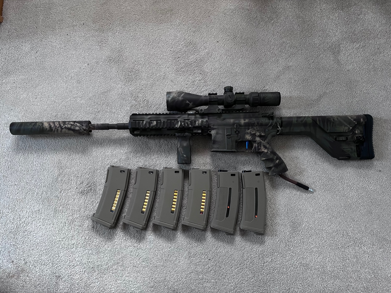Gun has only been used twice since being built due to giving up airsoft. Will throw in a nuprol deluxe rifle bag and a load of spares I have for it too.
