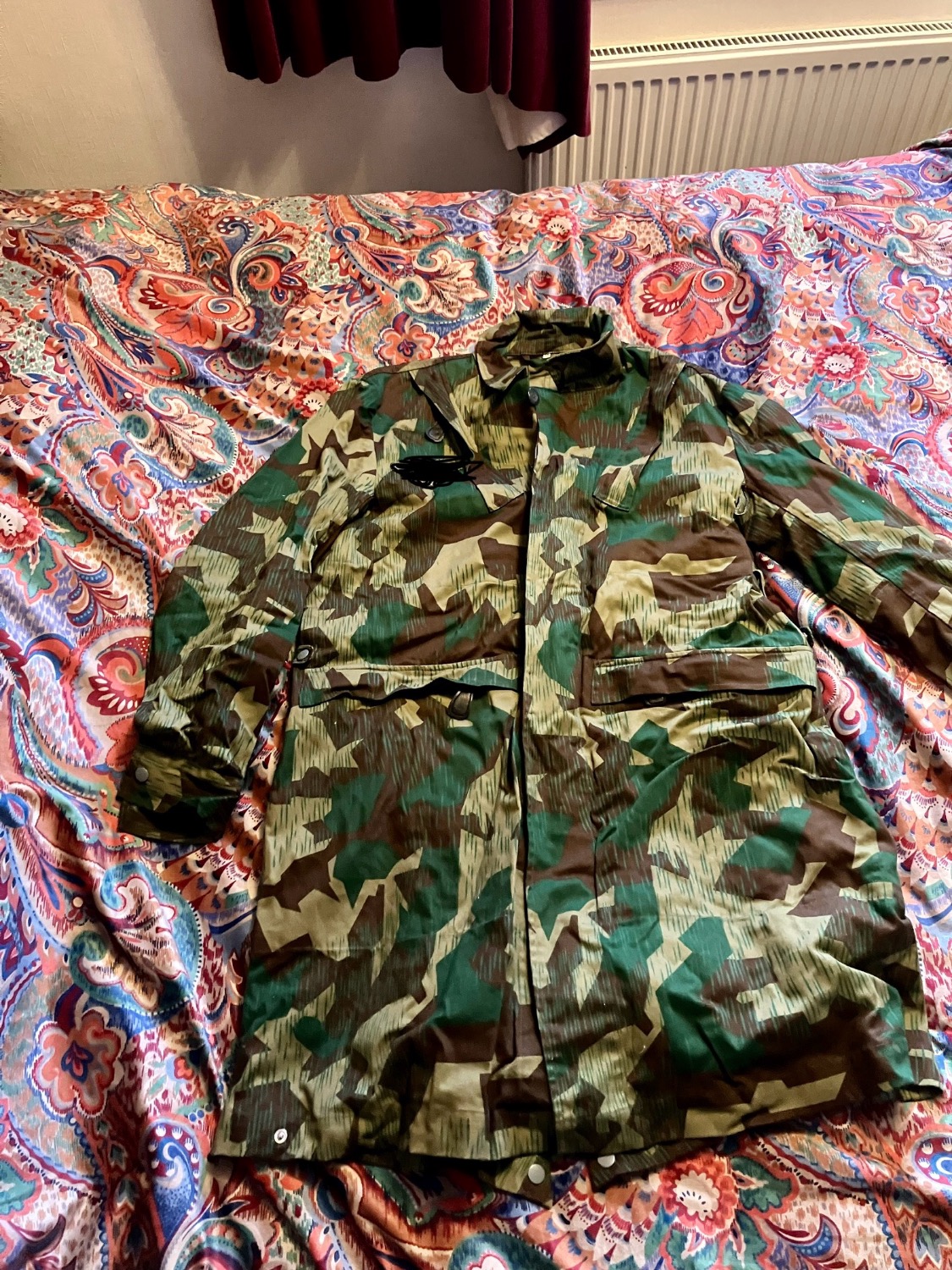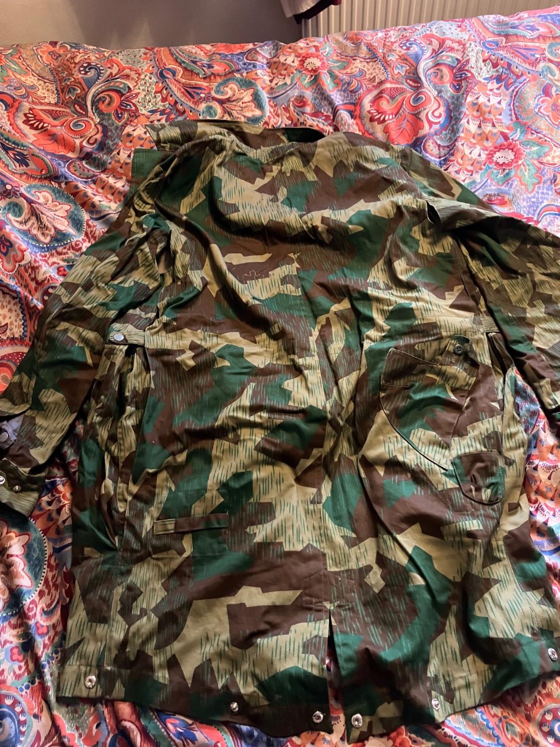 Repro WW2 German Fallschirmjager paratroopers jump smock. Very good copy in great condition, all zips and buttons ok. 3rd pattern splinter b camo. Size medium.