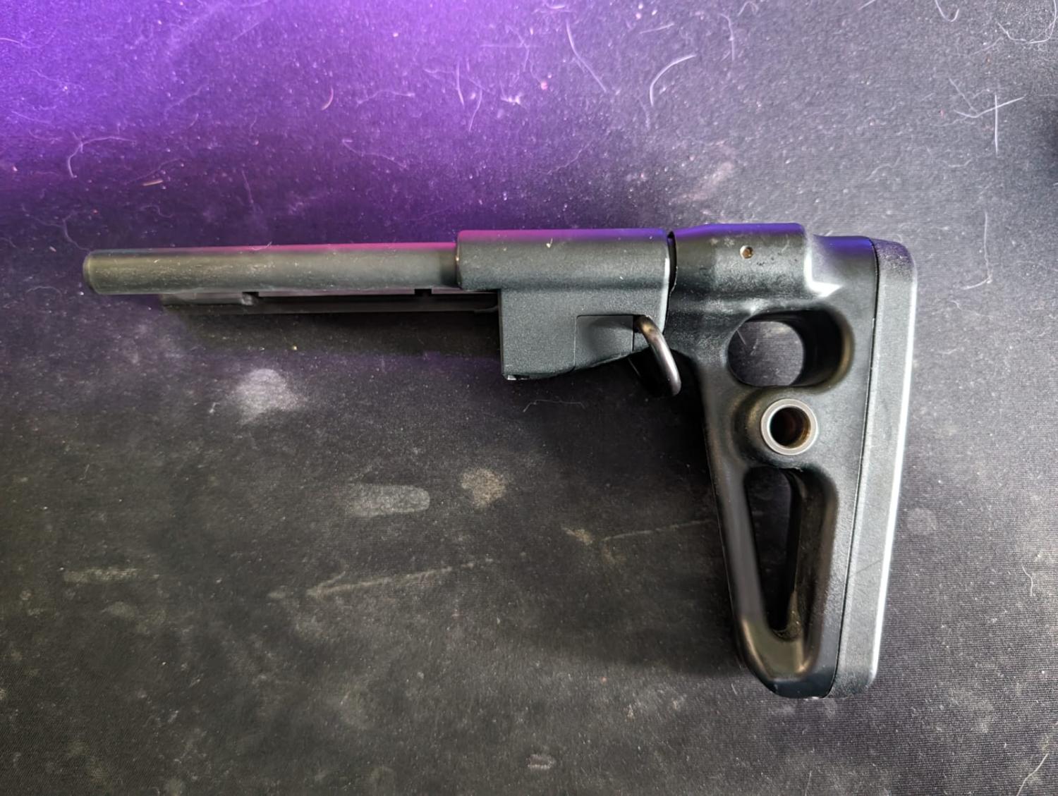 I'm looking to sell on my official SigAir licensed MPX/MCX retractable stock. This one is the one that usually comes on the MCX stock but it belongs on the MPX stock. So I'm looking to sell it on to a welcoming 1913 Picatinny rail.