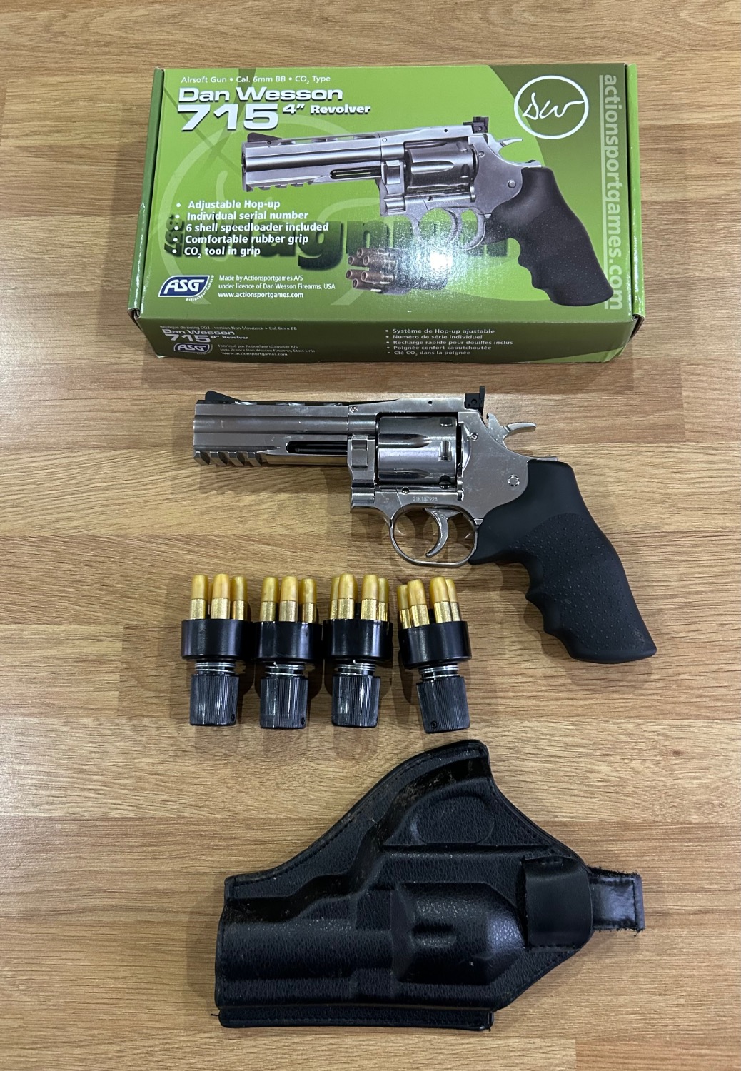 ASG Dan Wesson 715 4" Revolver CO2 Pistol with power down shells, speed loaders and holster
