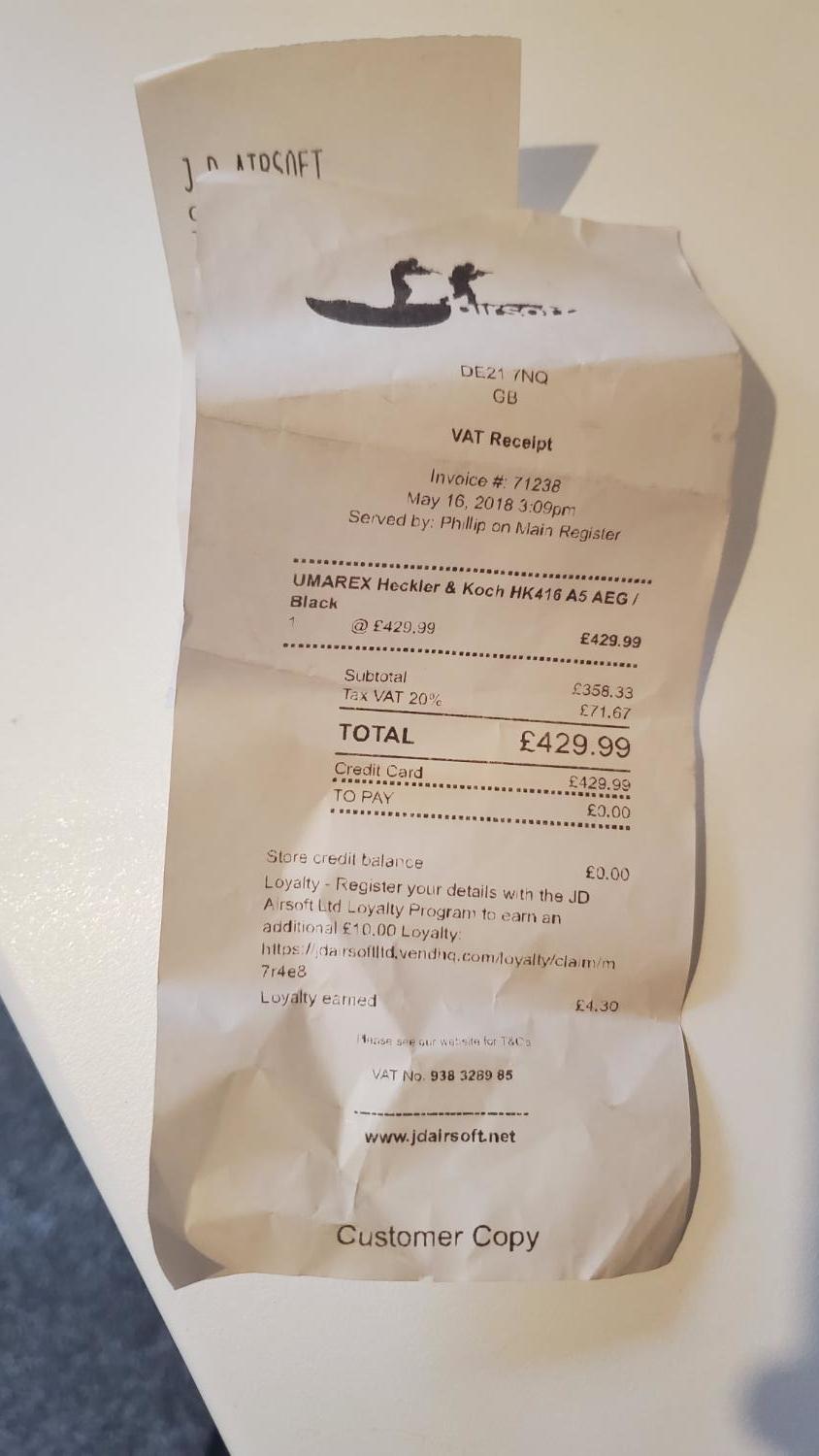 Unfortunately, I have to selling my 416 A5. I originally bought it off this form in late 2018, they had bought it from new (got the original receipts) and is came with the magazine and box. Only missing the rear sight.