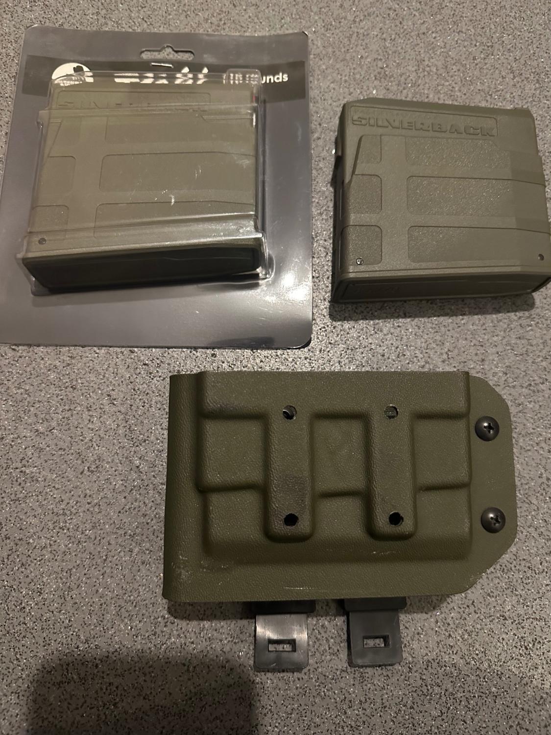 2 x Tac-41 110 rnd magazines OD one new still in the packaging. 1 x Kydex carrier OD with malice clips.
