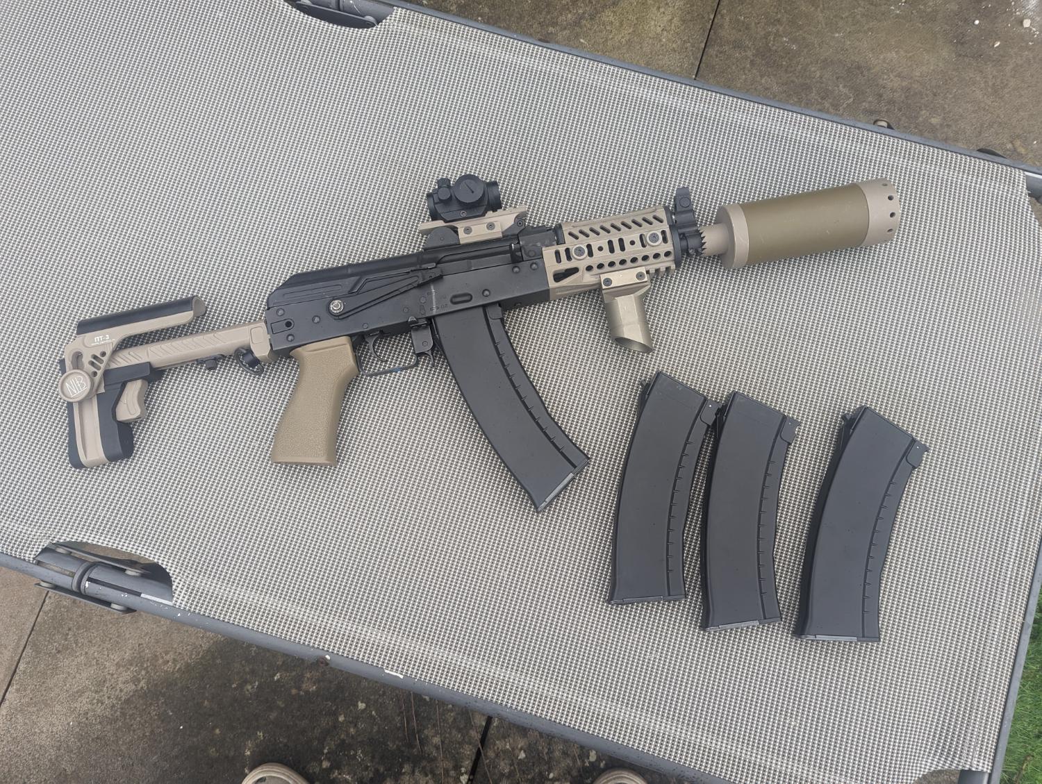 Quick change spring. Shoots on safe single and three shot burst ATM . 340 FPS